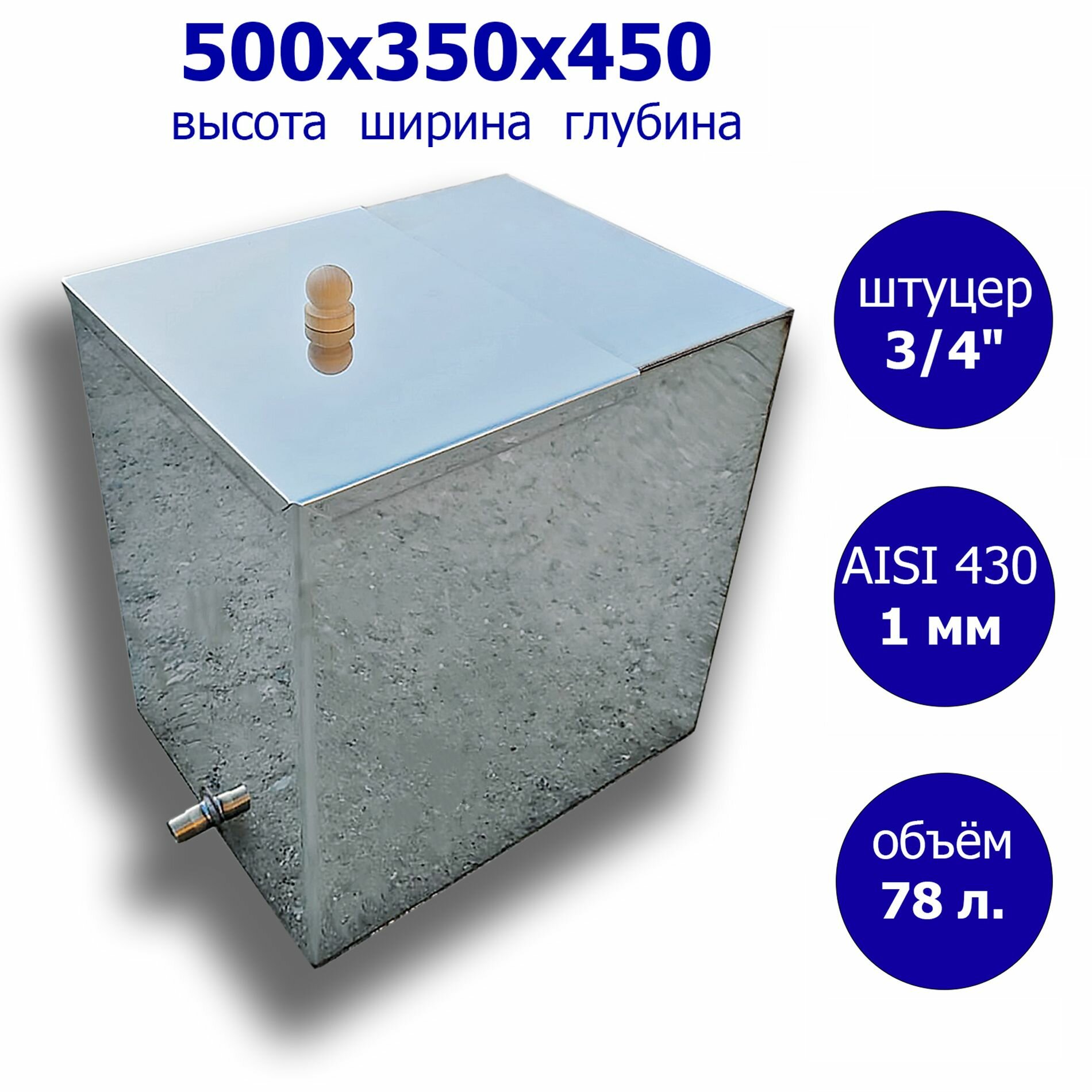Отзывы на Бак для печи (бани) 78 л. 450*350*500 мм 1,0 мм. Резьба 3/4" из нержавейки.