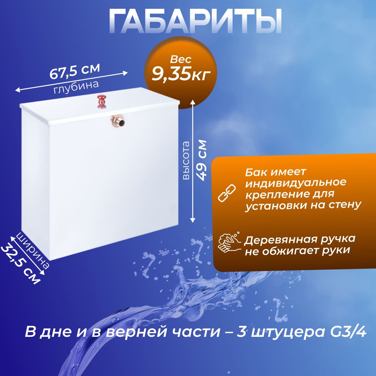 Бак из нержавейки 110л под контур (Прямоугольный) информация: