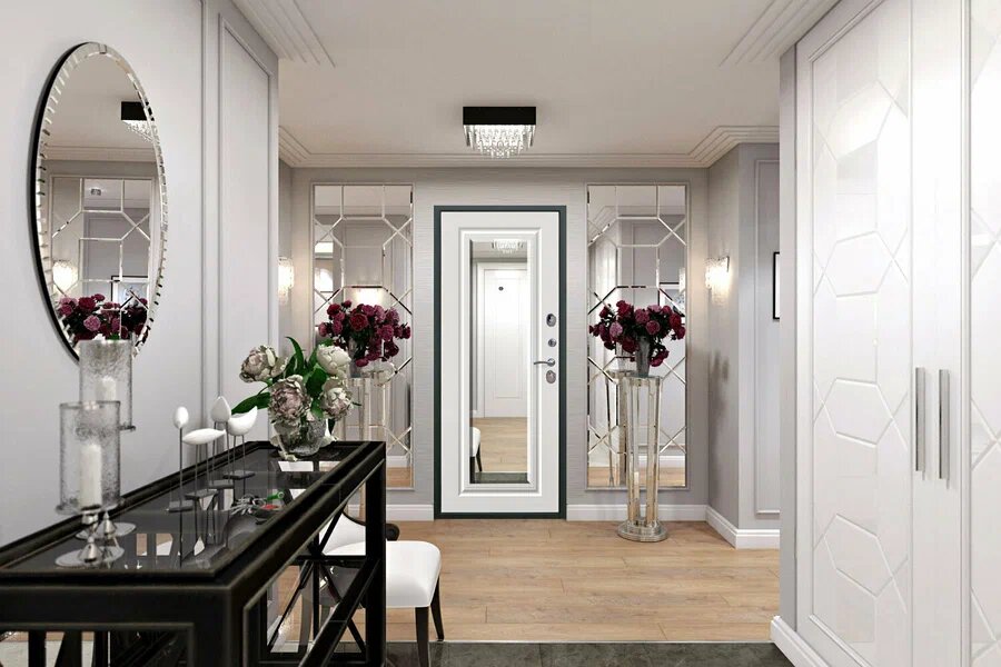 Входная дверь Labirint Лайн WHITE с зеркалом Фацет 960x2050, открывание левое