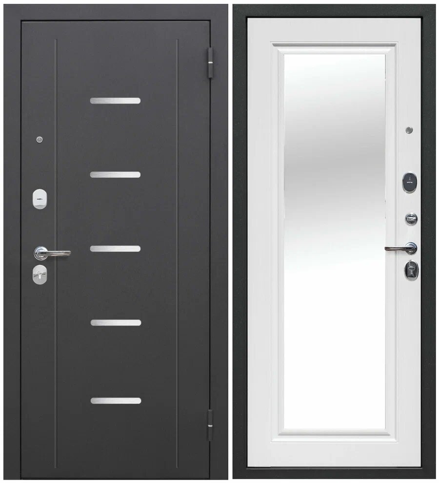 10 цен на Входная дверь Ferroni 7,5 см Гарда Серебро Зеркало Белый Ясень (860мм) левая