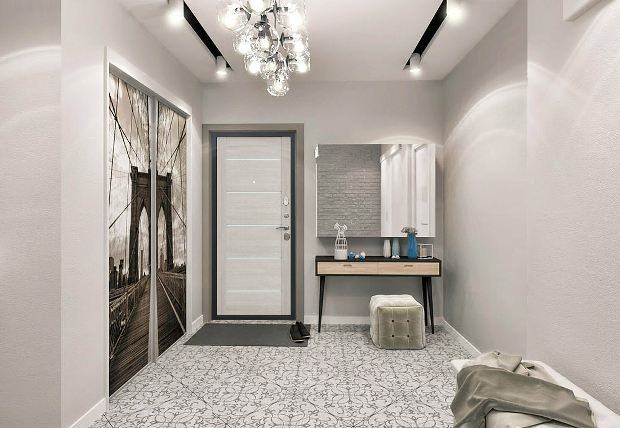 Входная дверь Labirint Лайн WHITE с зеркалом Фацет 960x2050, открывание левое
