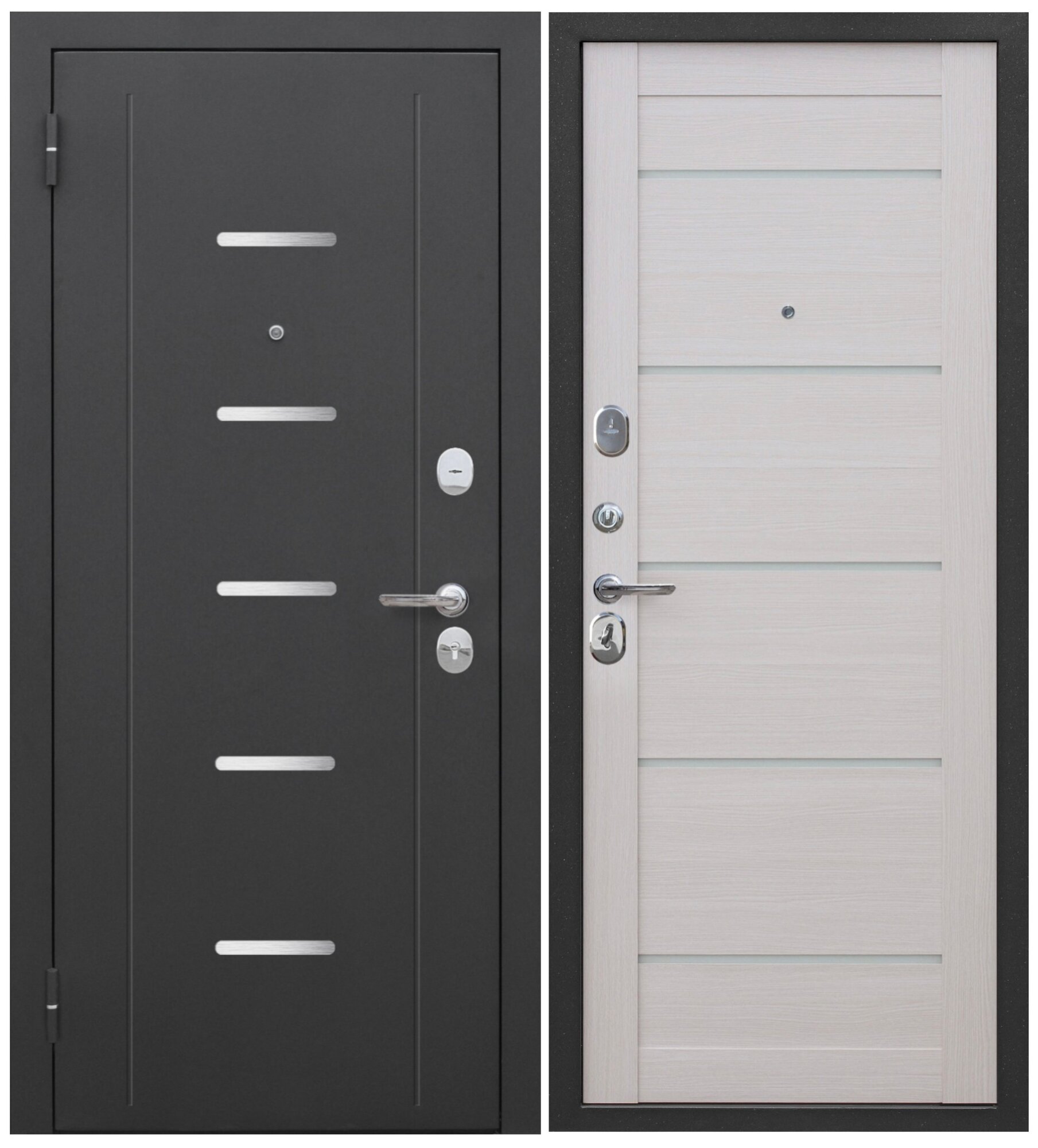 | Комплектация двери | броненакладка / глазок / доводчик / задвижка / замок / петли / противосъемные штыри / ручки / щеколда / эксцентрик |