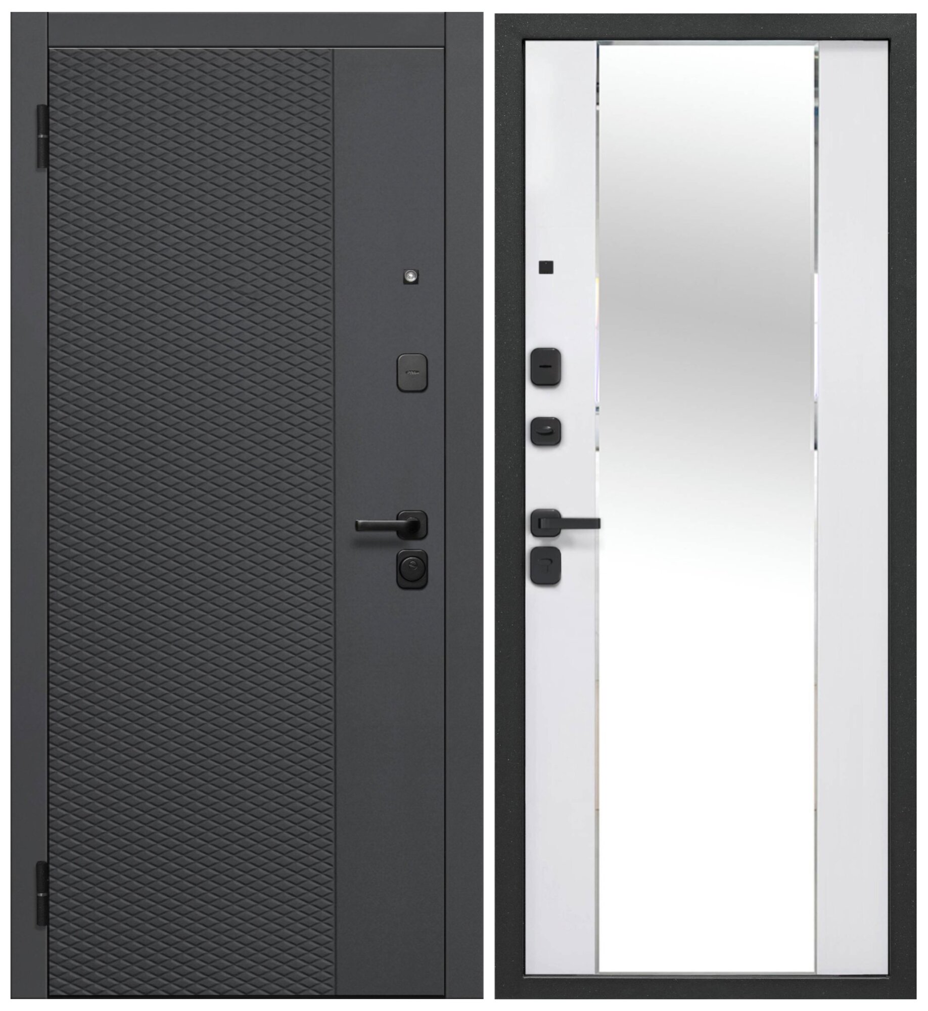 Входная дверь Labirint Лайн WHITE с зеркалом Фацет 960x2050, открывание левое