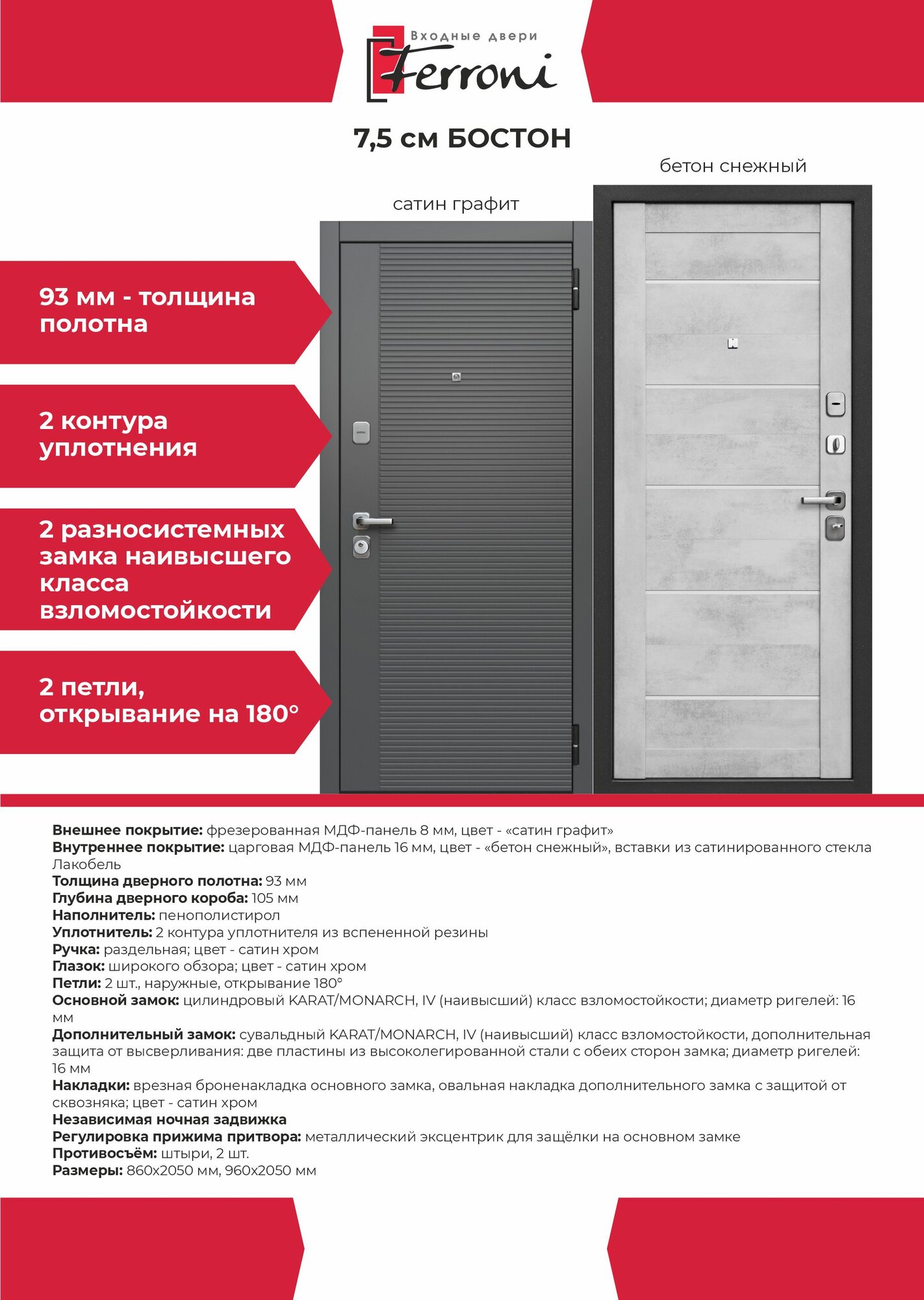 Входная дверь Ferroni Бостон Бетон Снежный Царга (860мм) правая информация: