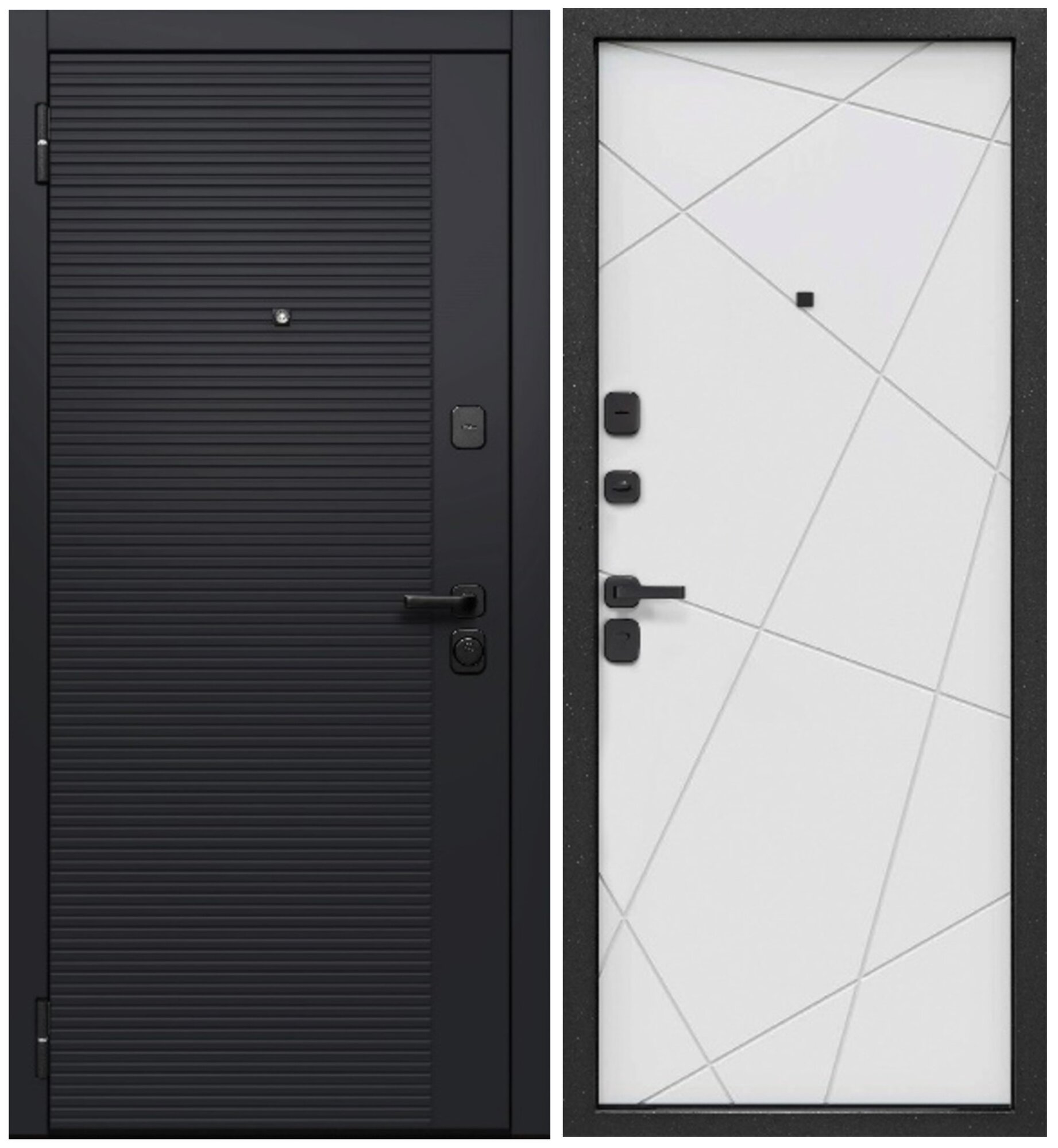 Дверь входная мегатрон WOOD 1 Ясень Дип Графит - Белый снег 860 Левая
