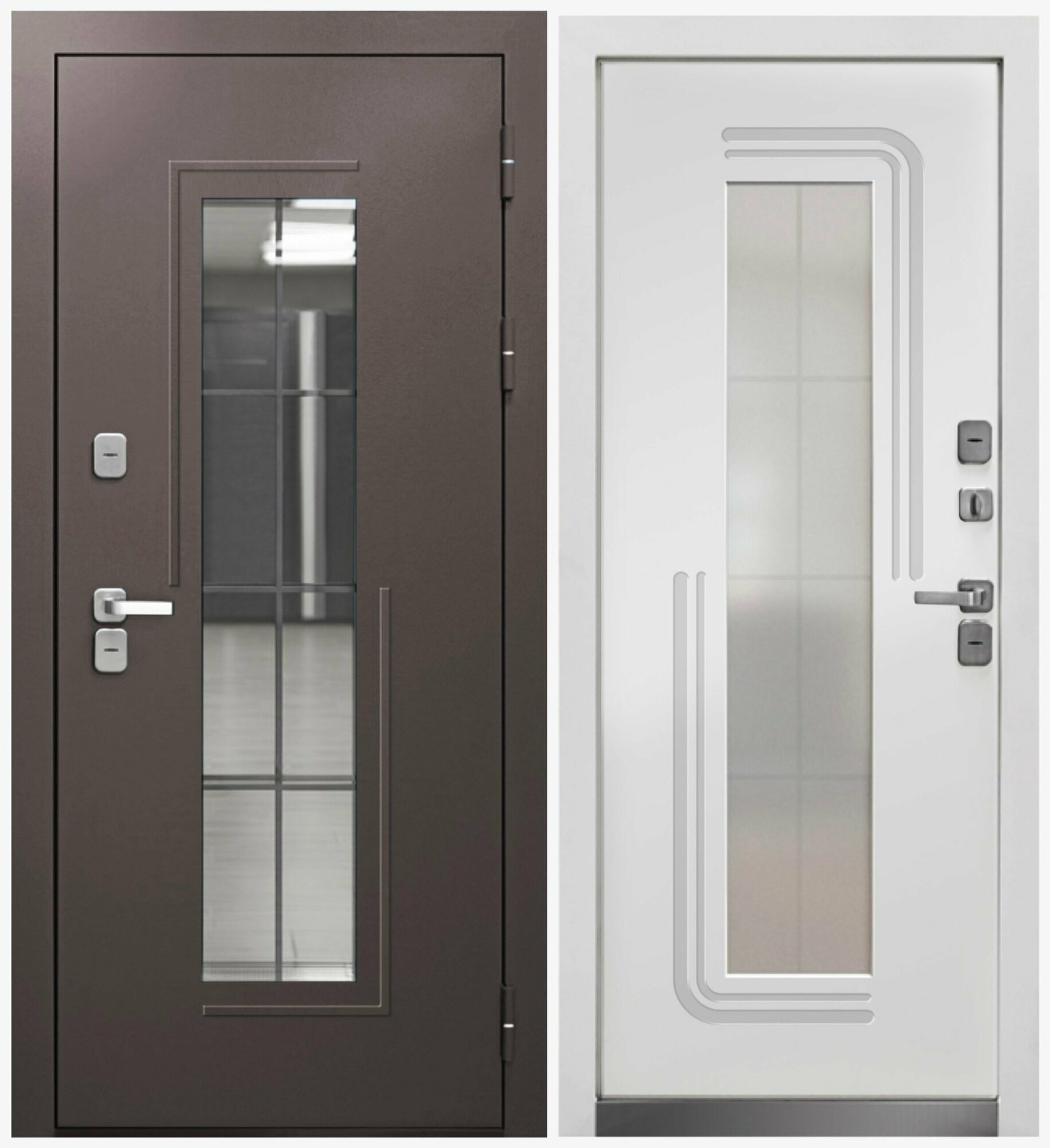 Входная дверь Labirint Лайн WHITE с зеркалом Фацет 960x2050, открывание левое