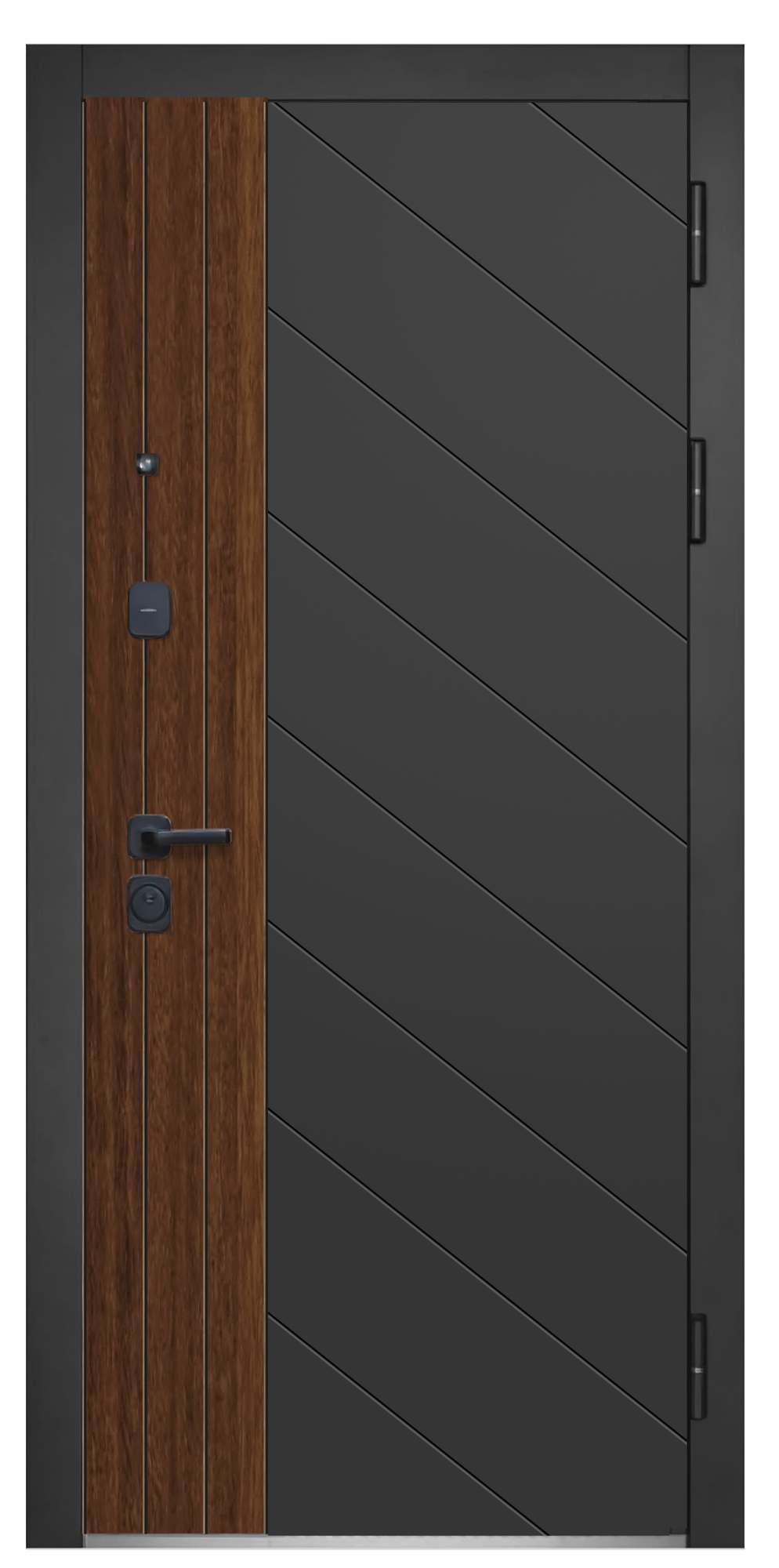 Дверь входная мегатрон WOOD 1 Ясень Дип Графит - Белый снег 860 Левая