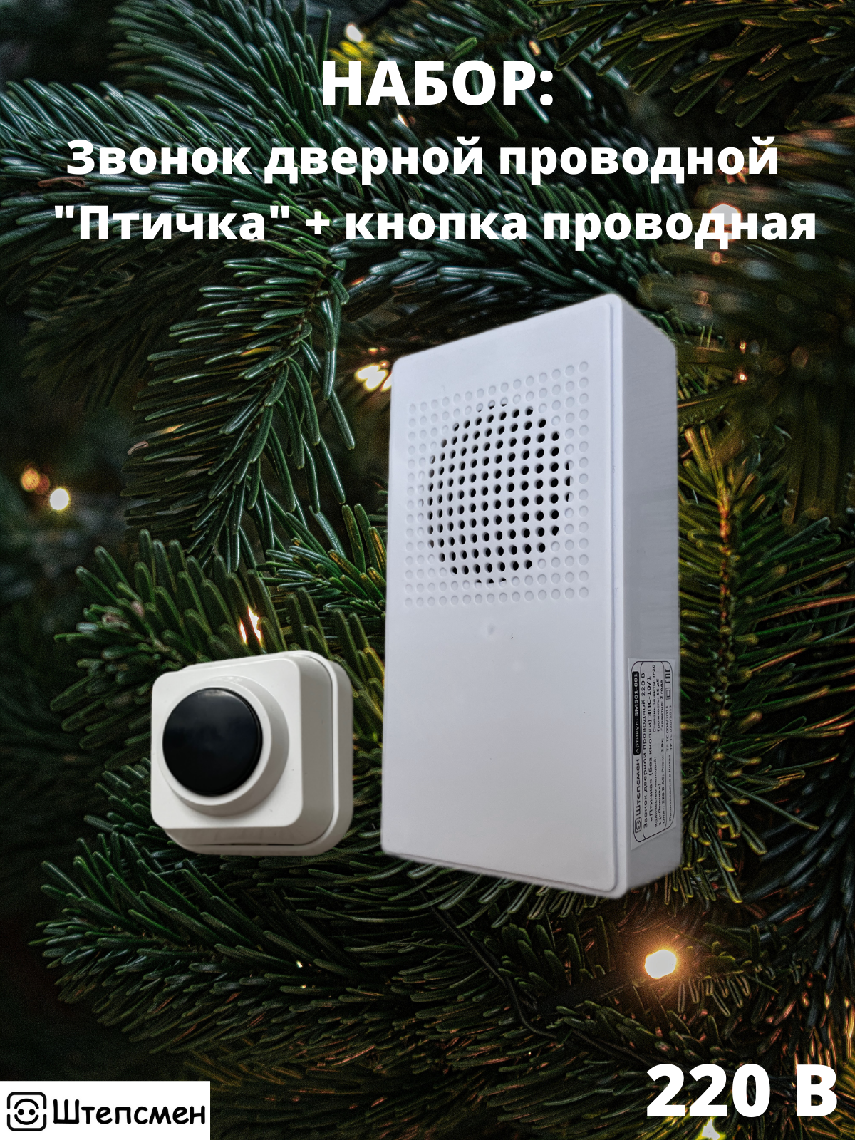 Набор звонок проводной дверной Птичка с кнопкой проводной Классик IP20 220В Штепсмен информация: