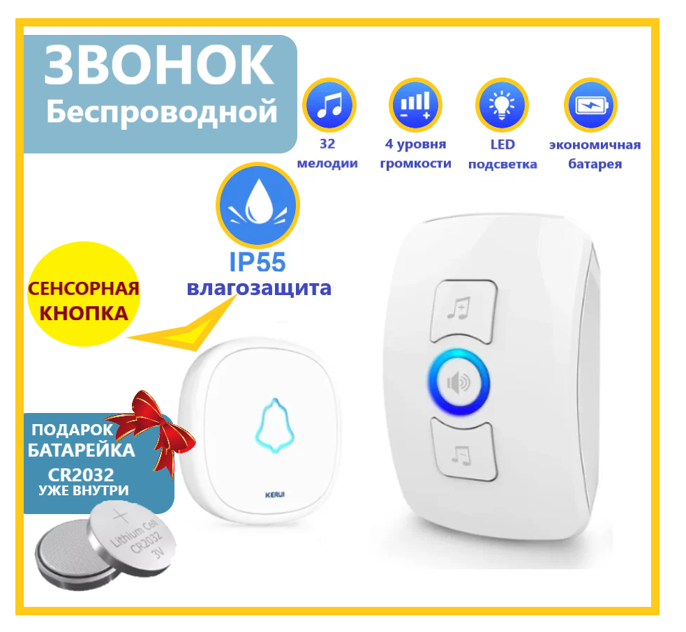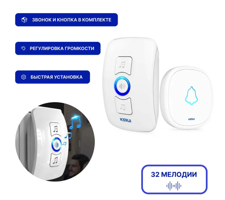 | Вид звонка | электронный беспроводной |