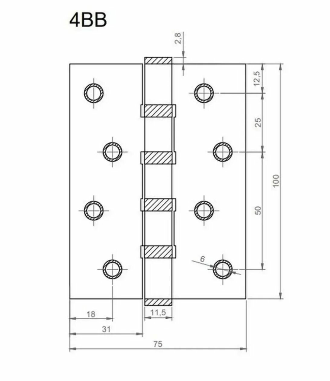 Универсальная дверная петля Vantage 4BB-CP хром для межкомнатных дверей (Врезная карточная петля вантаж с 4 подшипниками, навесы) 490 ₽