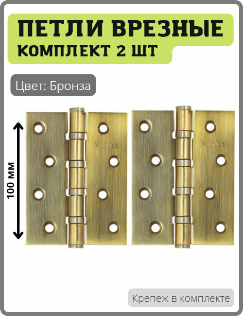 Петля универсальная врезная 100х75х2.5 4BB-AB бронза VANTAGE (2 шт. в комлекте)