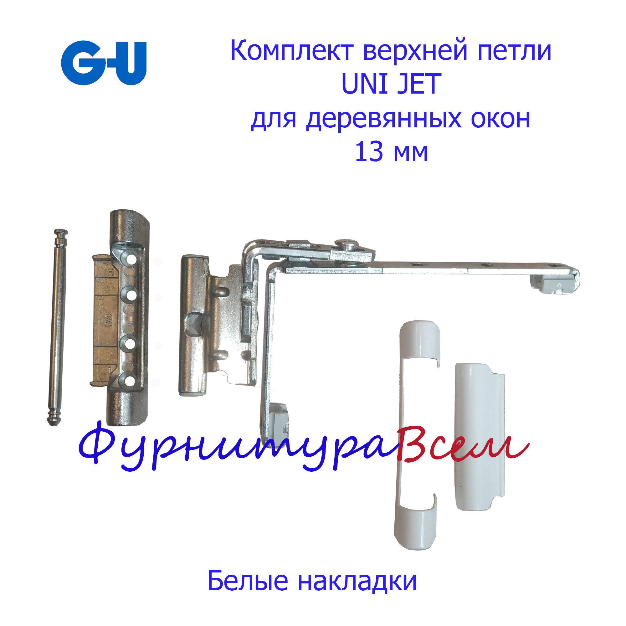 Верхняя петля G-U UNI JET 13 мм для деревянных окон комплект с белыми накладками информация: