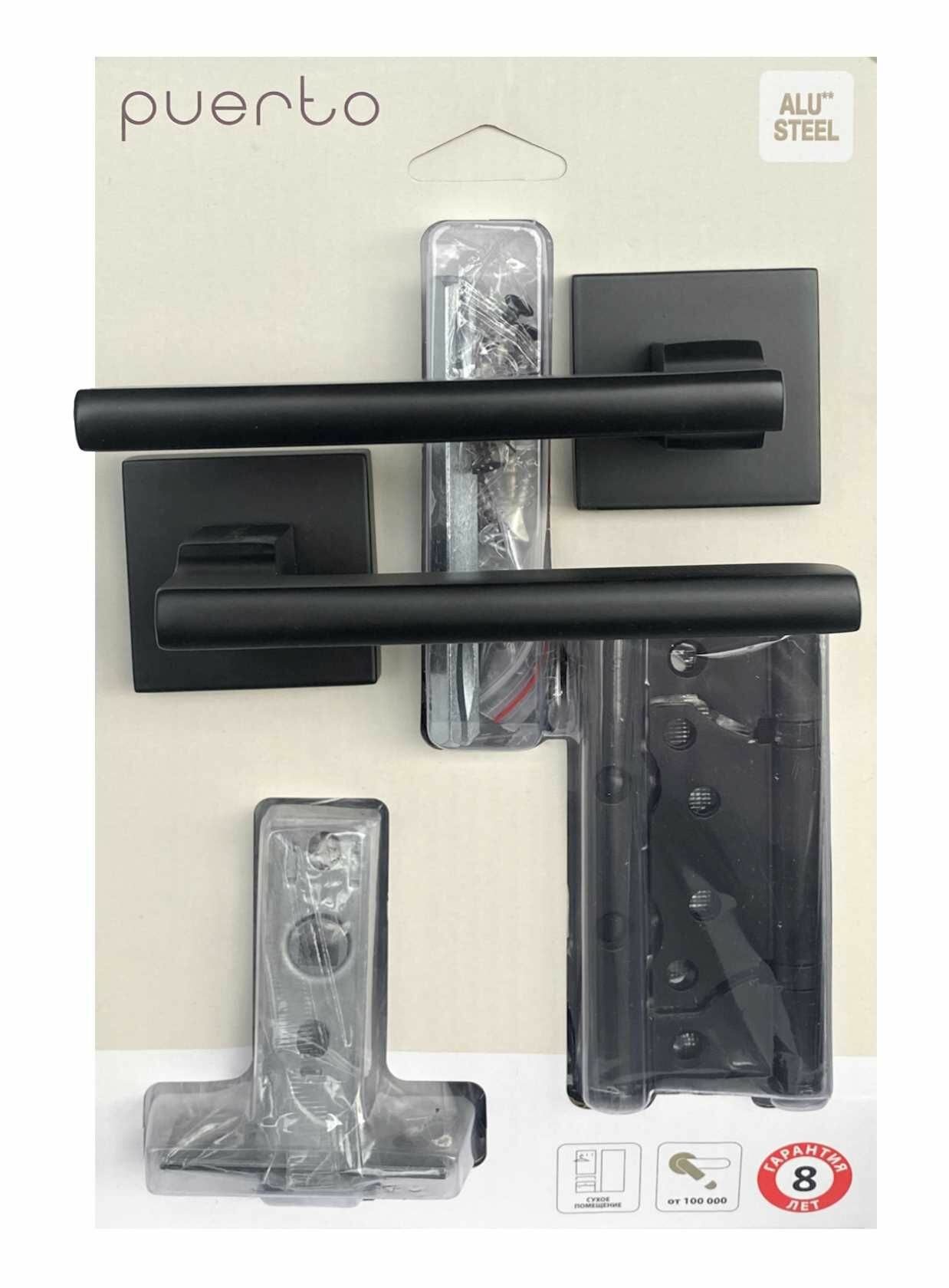 Комплект дверной фурнитуры PUERTO (ручка дверная межкомнатная, защелка м/к, петли накладные без врезки), черный