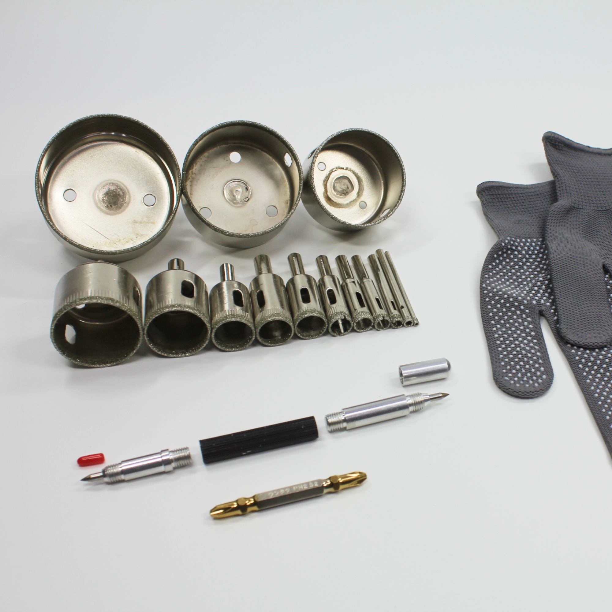 10 цен на Набор алмазных коронок 14шт +чертика твердосплавная +бита магнитная +перчатки