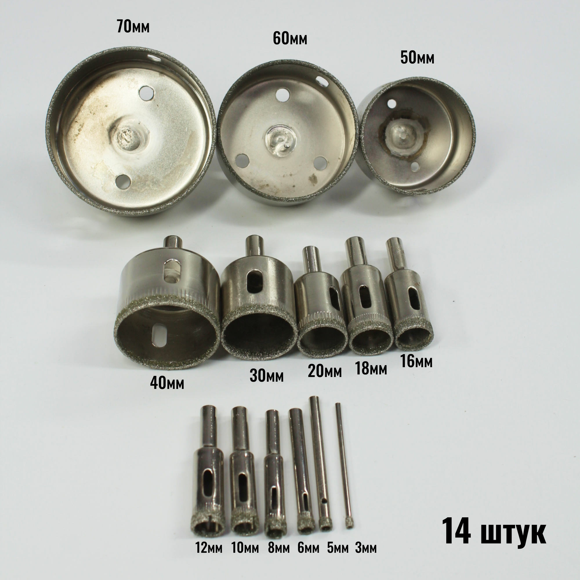 Набор алмазных коронок 14шт +чертика твердосплавная +бита магнитная +перчатки информация: