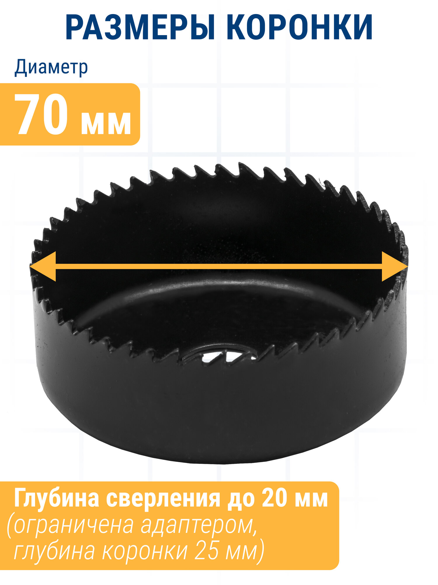 Коронка HCS по дереву/гипсокартону ПРАКТИКА "Мастер" 70 мм, L-27мм, без адаптера (1 шт) информация: