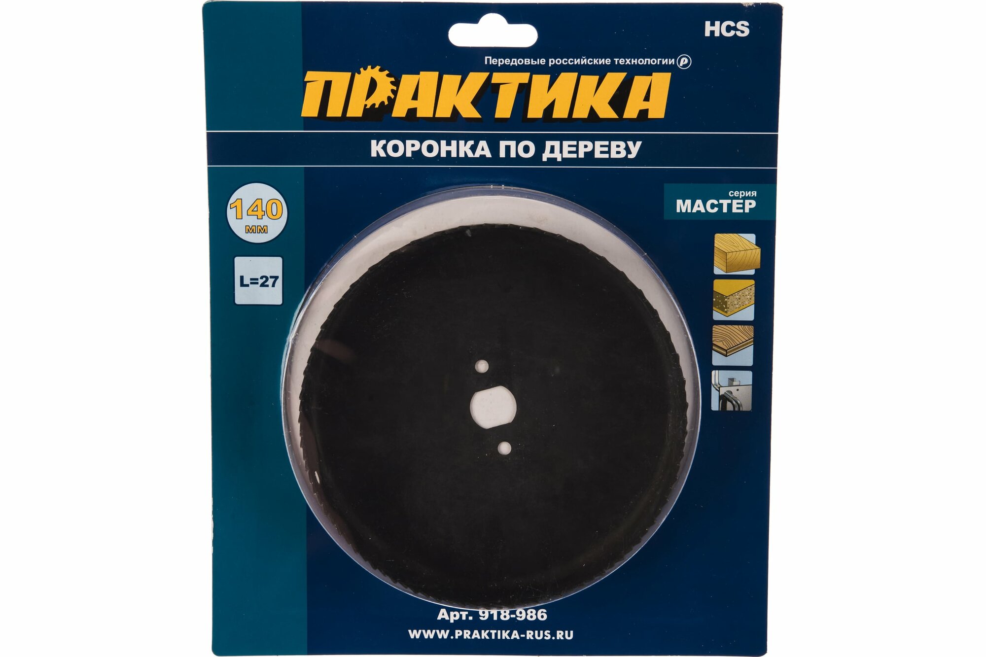 Коронка HCS по дереву/гипсокартону ПРАКТИКА "Мастер" 140 мм, L-27мм, без адаптера (1 шт), блистер 553 ₽