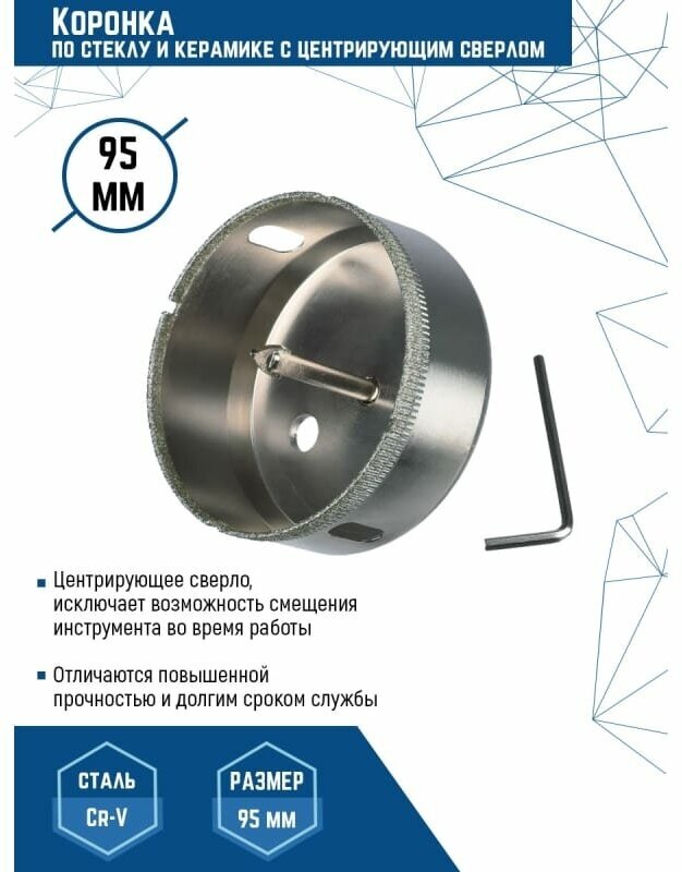 Коронка по стеклу и керамике VertexTools 95X55 с центрирующим сверлом CRv информация: