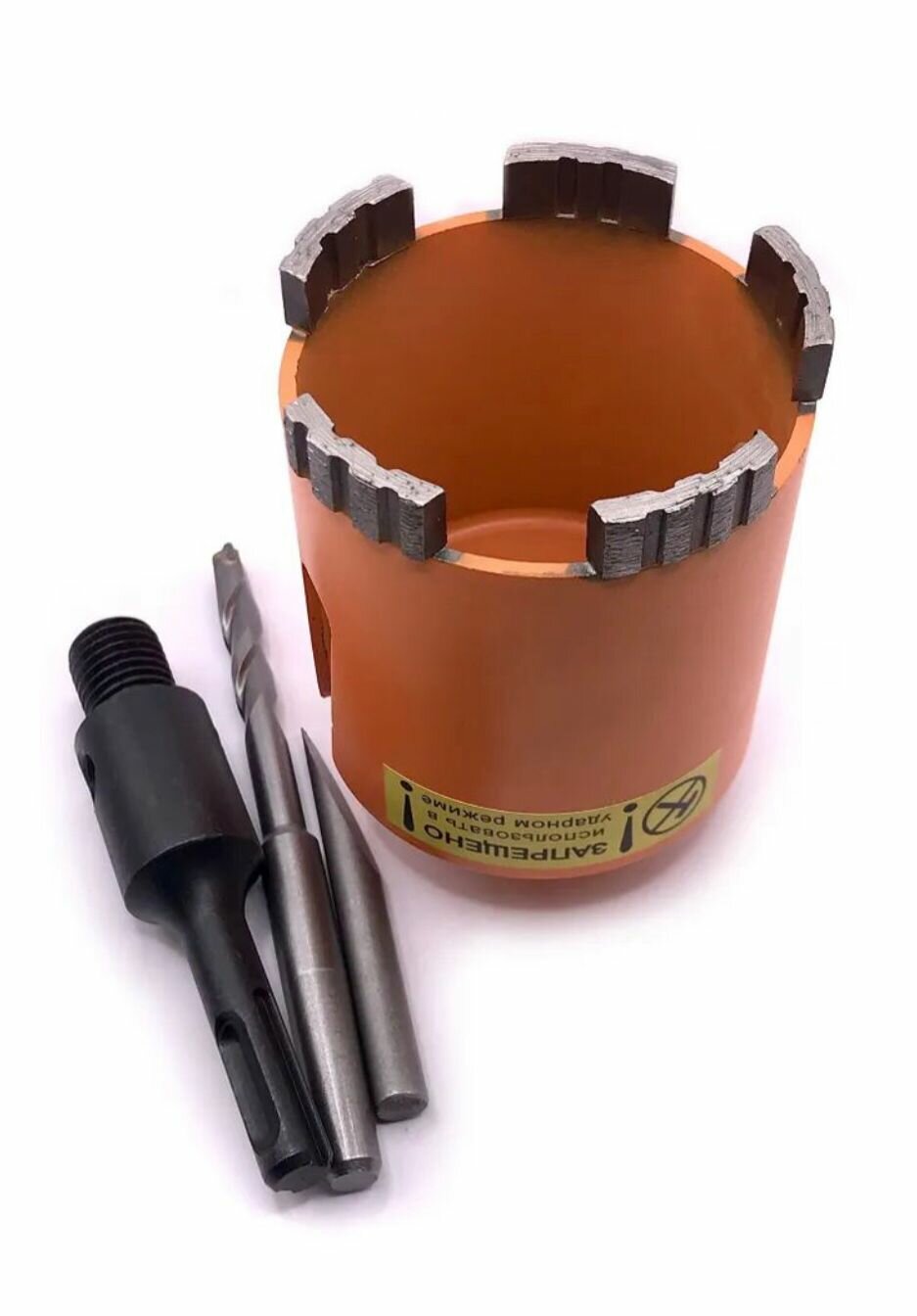 10 цен на Алмазная коронка по бетону Ф82 для перфоратора С хвостовиком SDS-PLUS в наборе держатель и центрирующее сверло