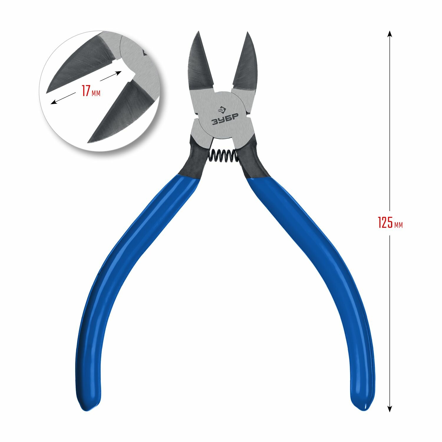 Бокорезы "бульдог Мини", для пластика и меди, хромоникелевая сталь, обливные рукоятки, особочистый рез заподлицо, 125 мм, ЗУБР Профессионал