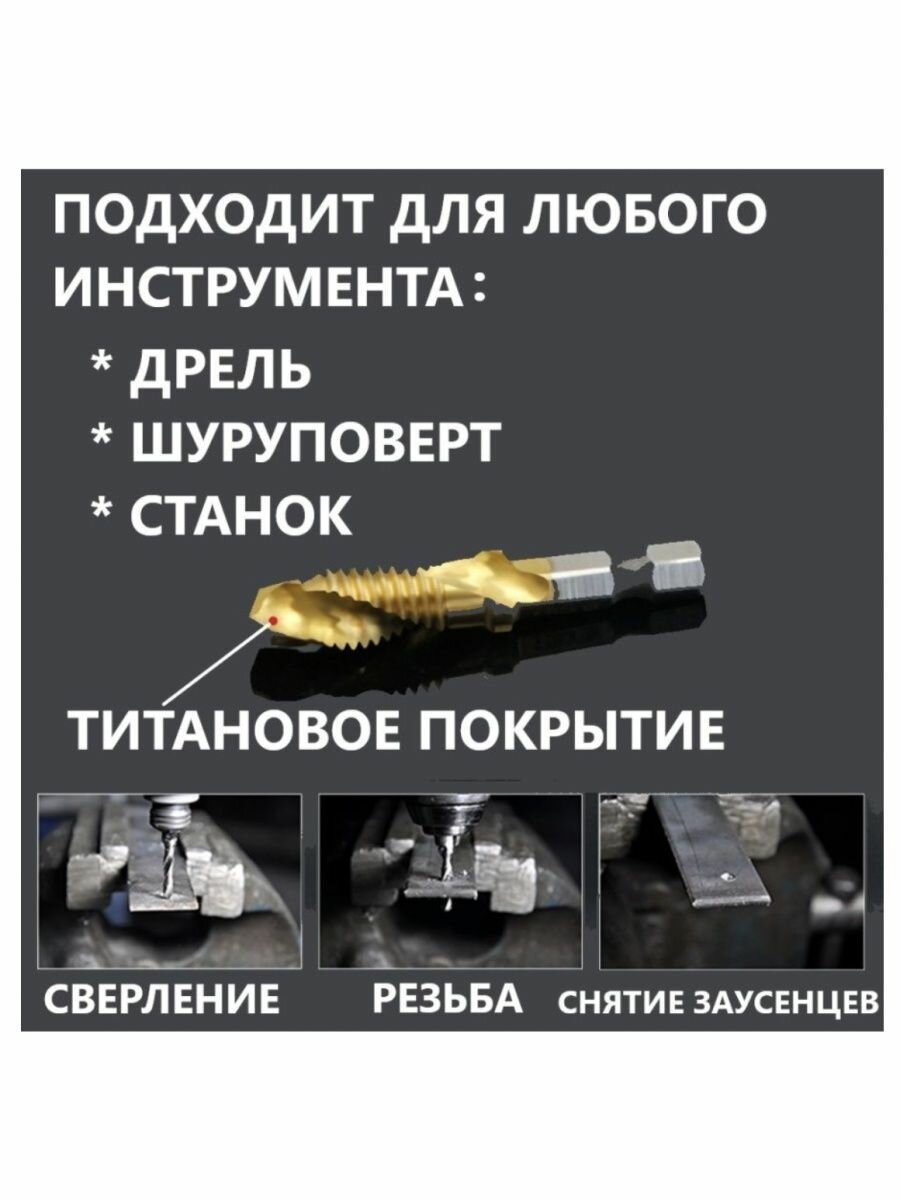 Сверло-метчик с титановым покрытием, набор из 6 штук информация: