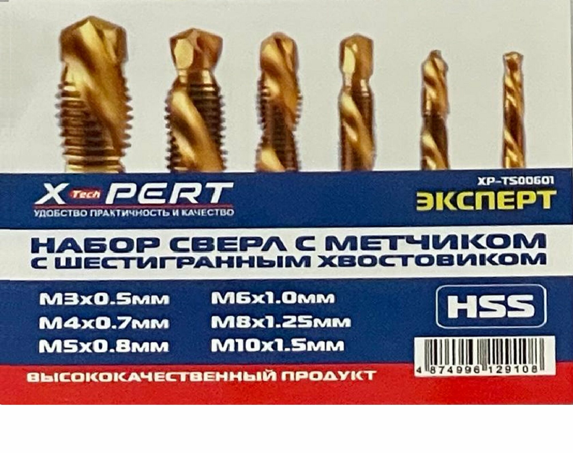 Набор сверл-метчиков с титановым покрытием из быстрорежущей стали, с шестигранным хвостовиком . 3-10мм информация: