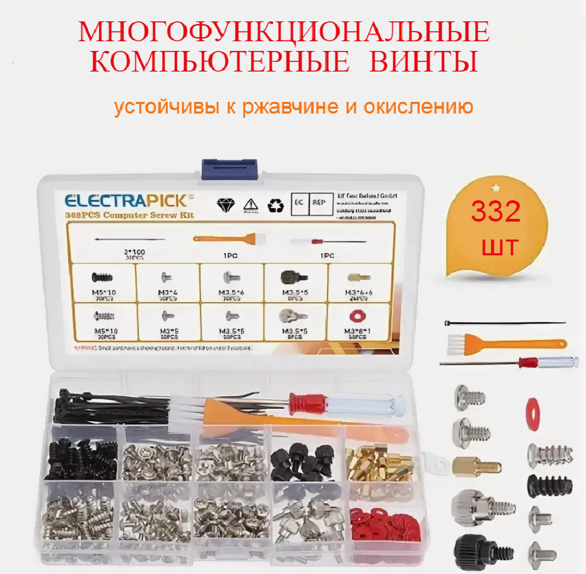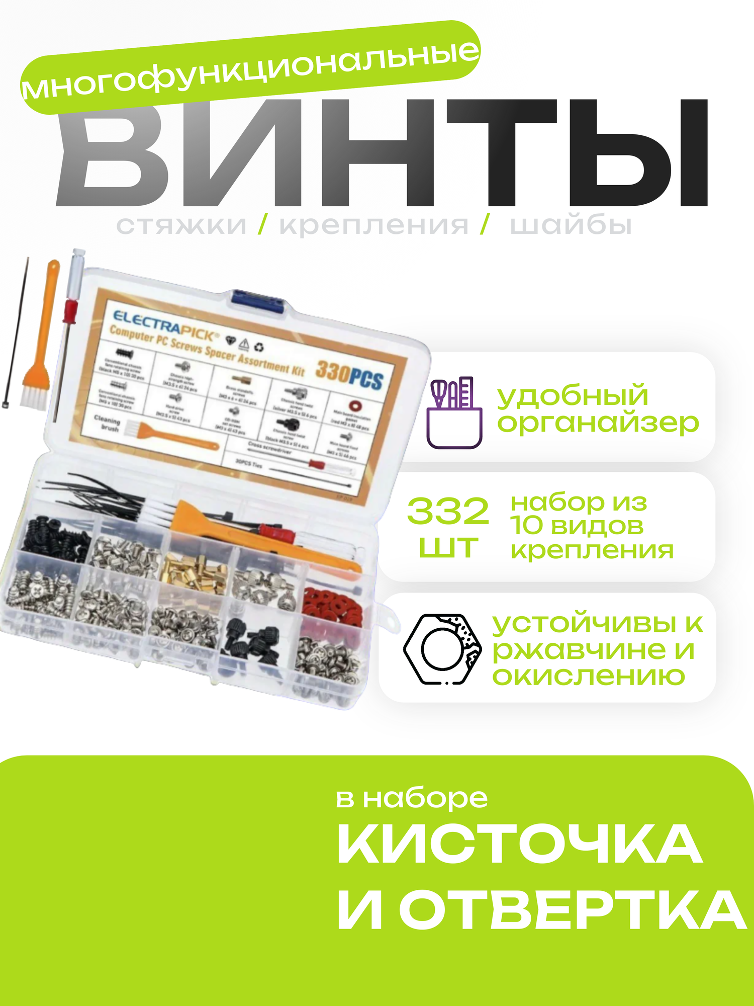 Отзывы на Набор винтов для сборки компьютера комплект 332 шт + магнитная отвертка /щеточка