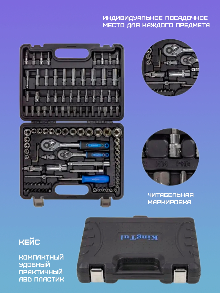 Набор инструментов KINGQUEEN для автомобиля, 116 предметов в кейсе, сталь CRV