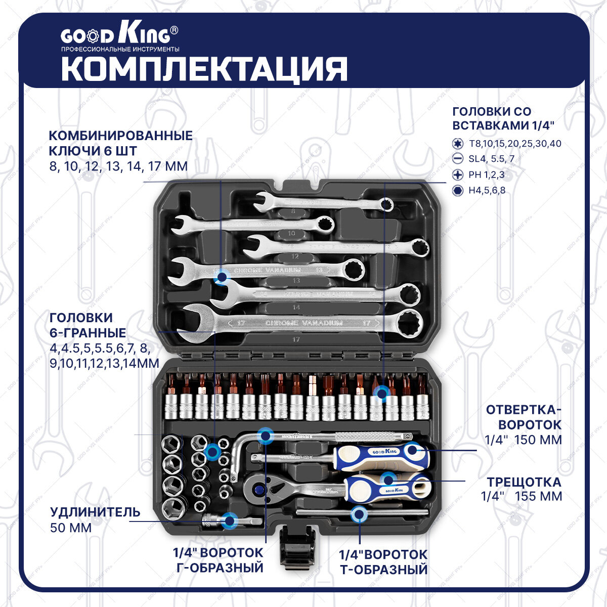 10 цен на Набор инструментов GOODKING, 42 предмета, трещотка 1/4", набор торцевых головок, ключей (B-10042)