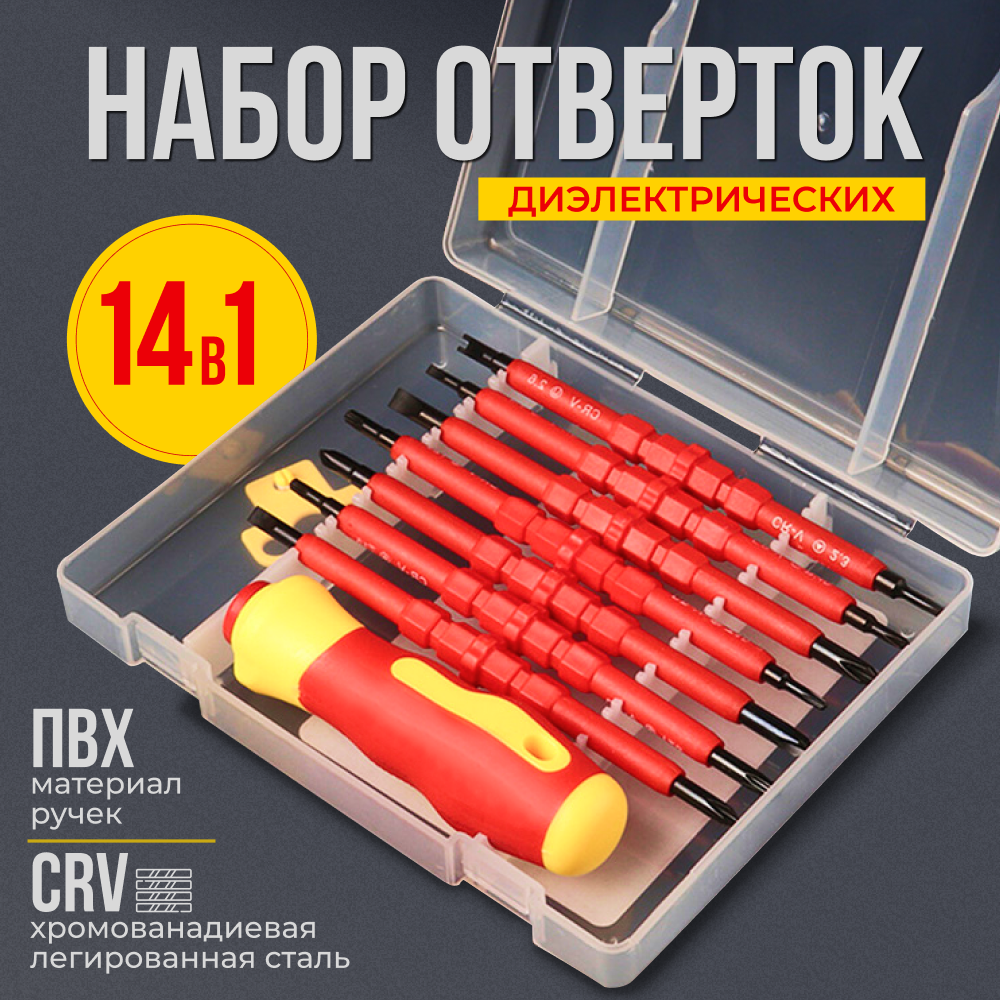 Набор отверток для точных работ 14 в 1, диэлектрические отвертки CR-V с магнитным наконечником в кейсе информация: