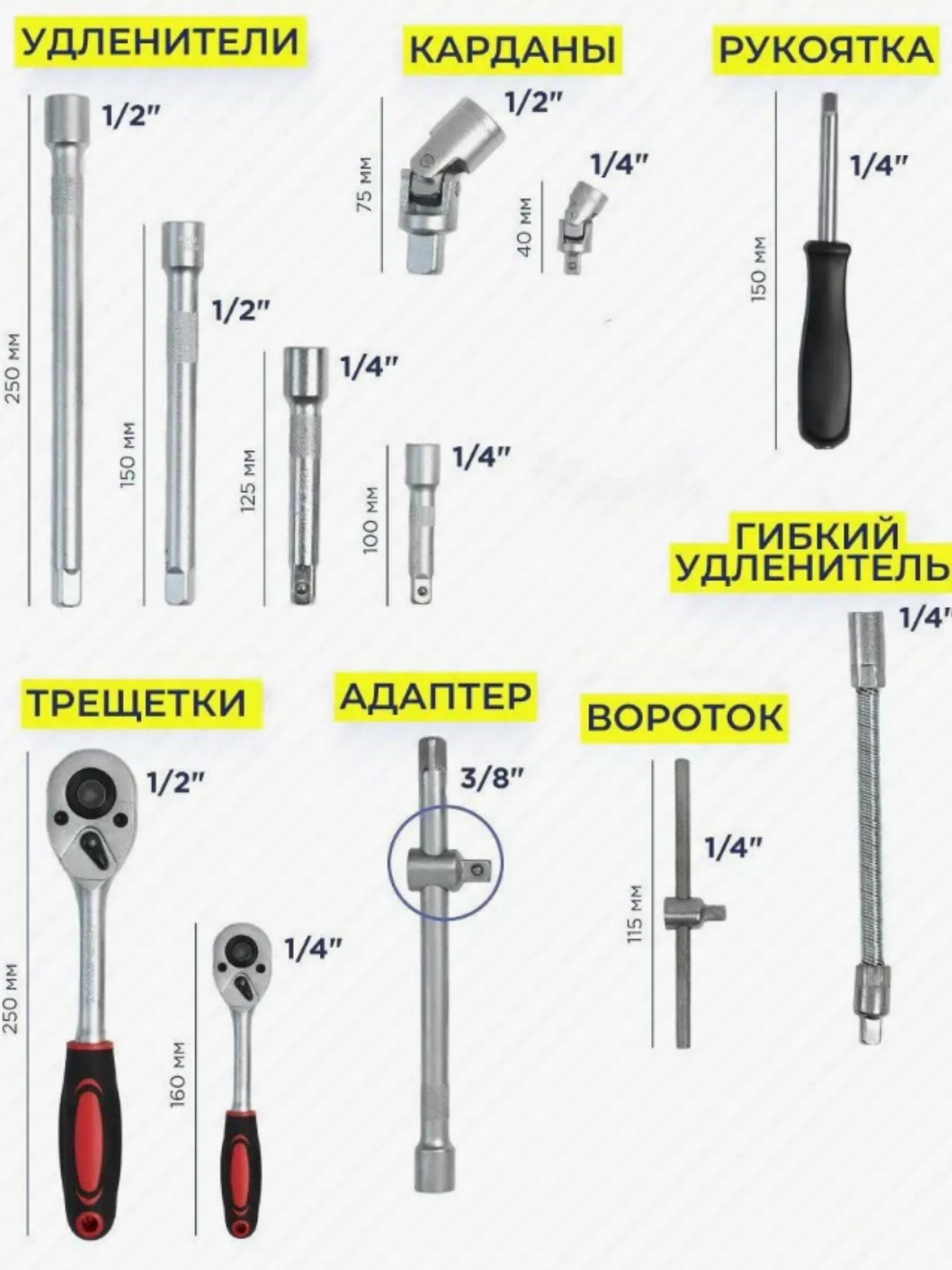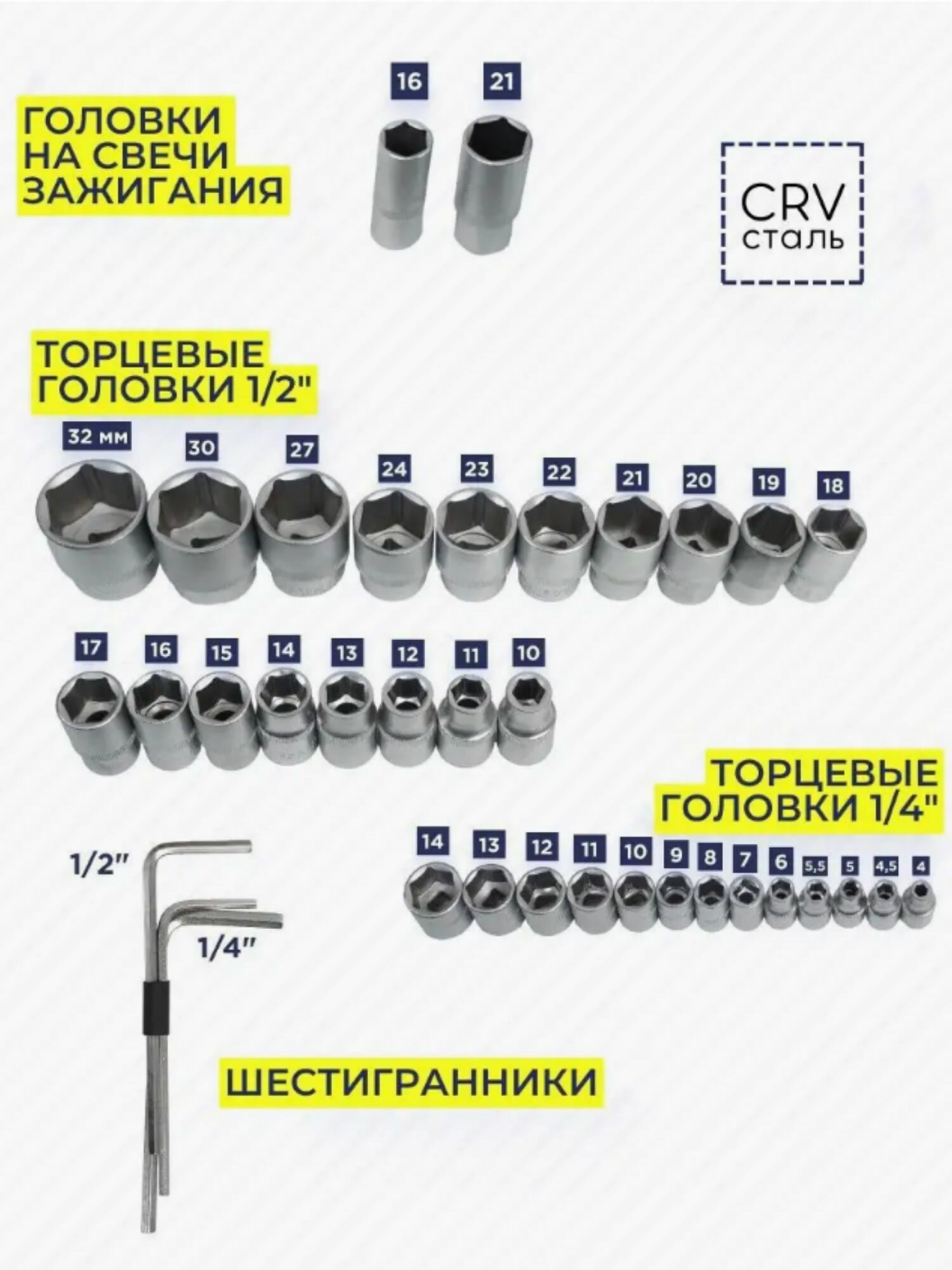 Набор торцевых головок 1/2" кузьмич НИК-027/12, 12 предметов