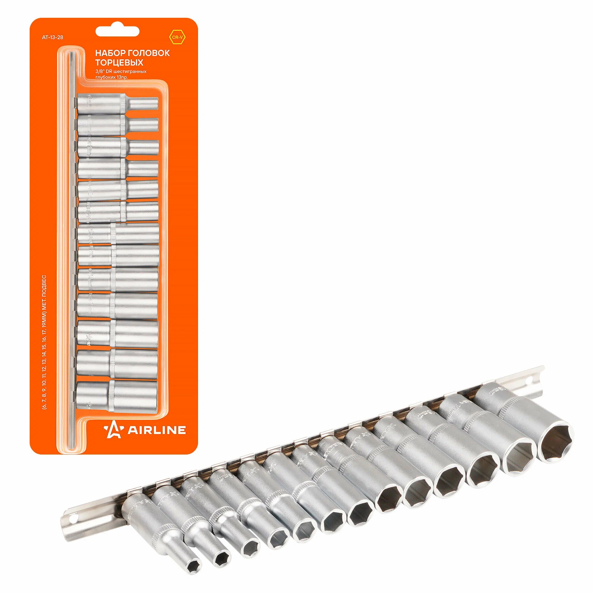 Набор головок 3/8 13 предм. 6-19мм глубоких с удлинителем, воротком, трещоткой информация:
