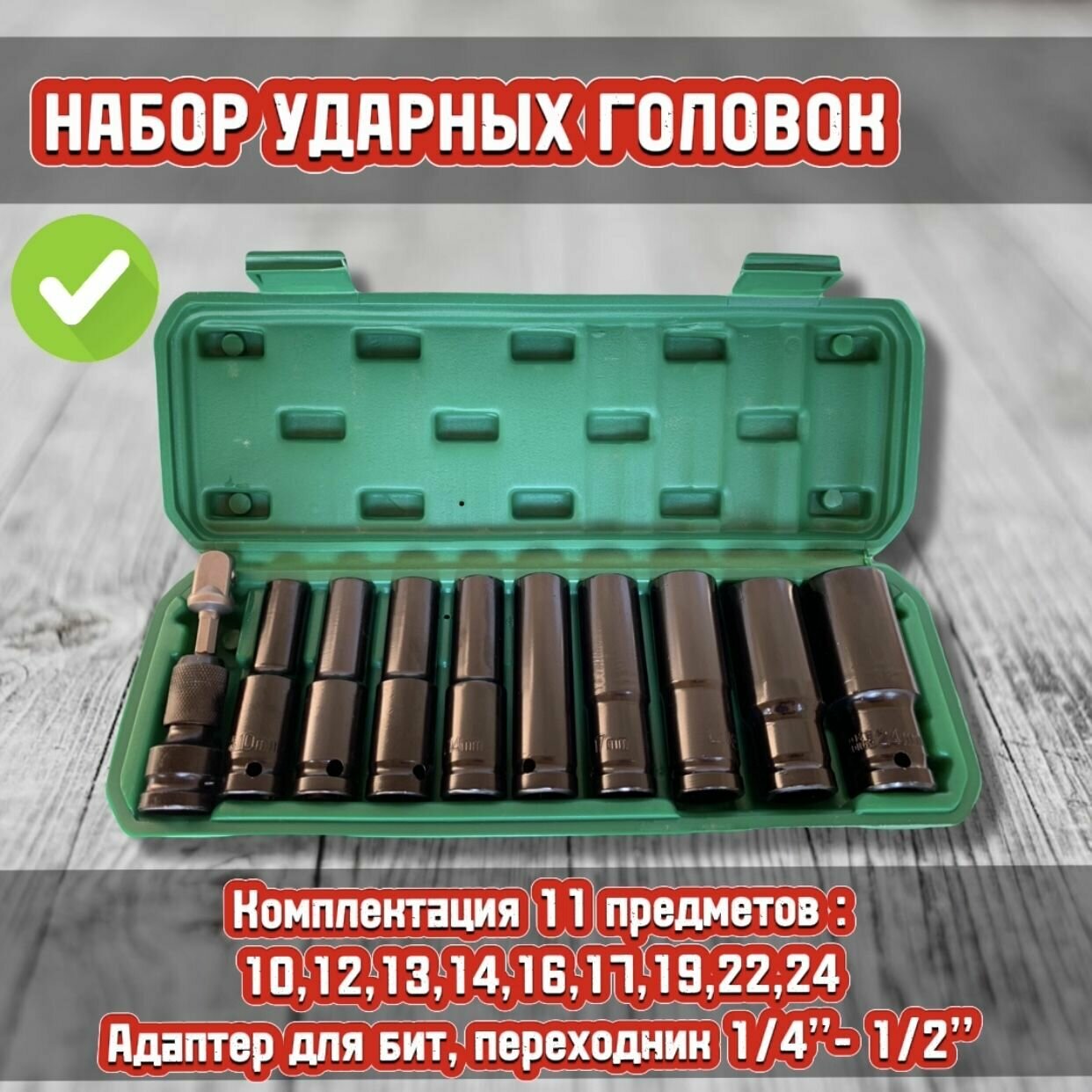 Набор головок ударных удлиненных 1/2" 10-24мм 11 предметов информация: