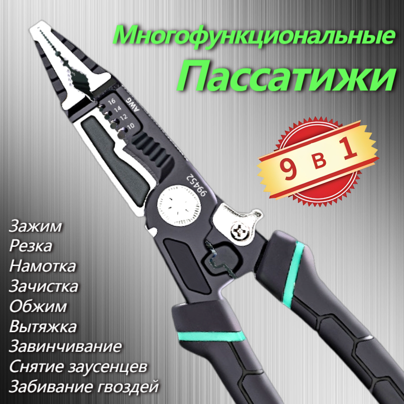 Отзывы на Многофункциональные комбинированные пассатижи плоскогубцы 9 в 1, универсальные клещи, для электрика