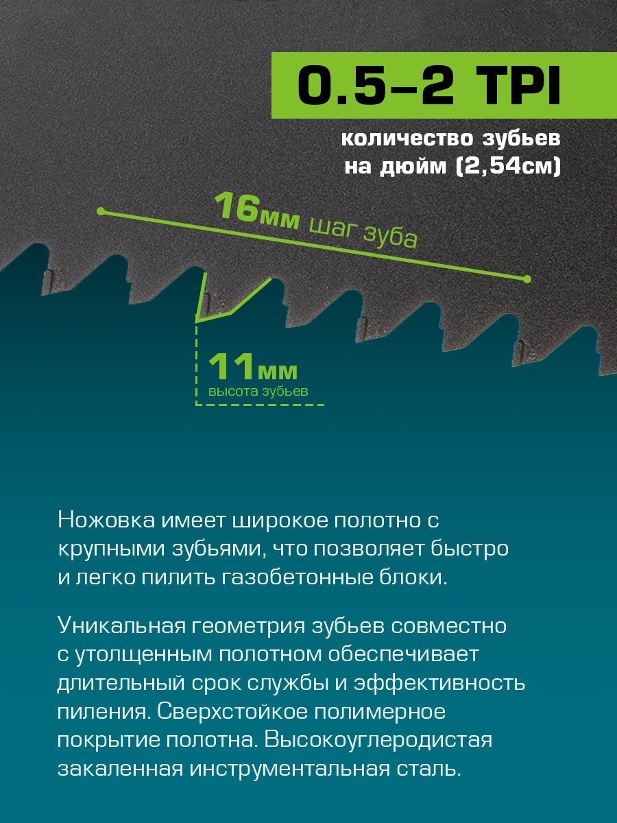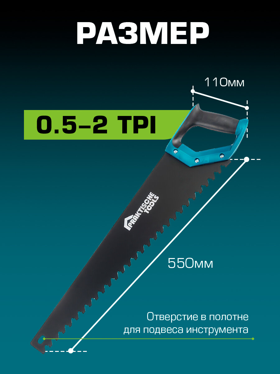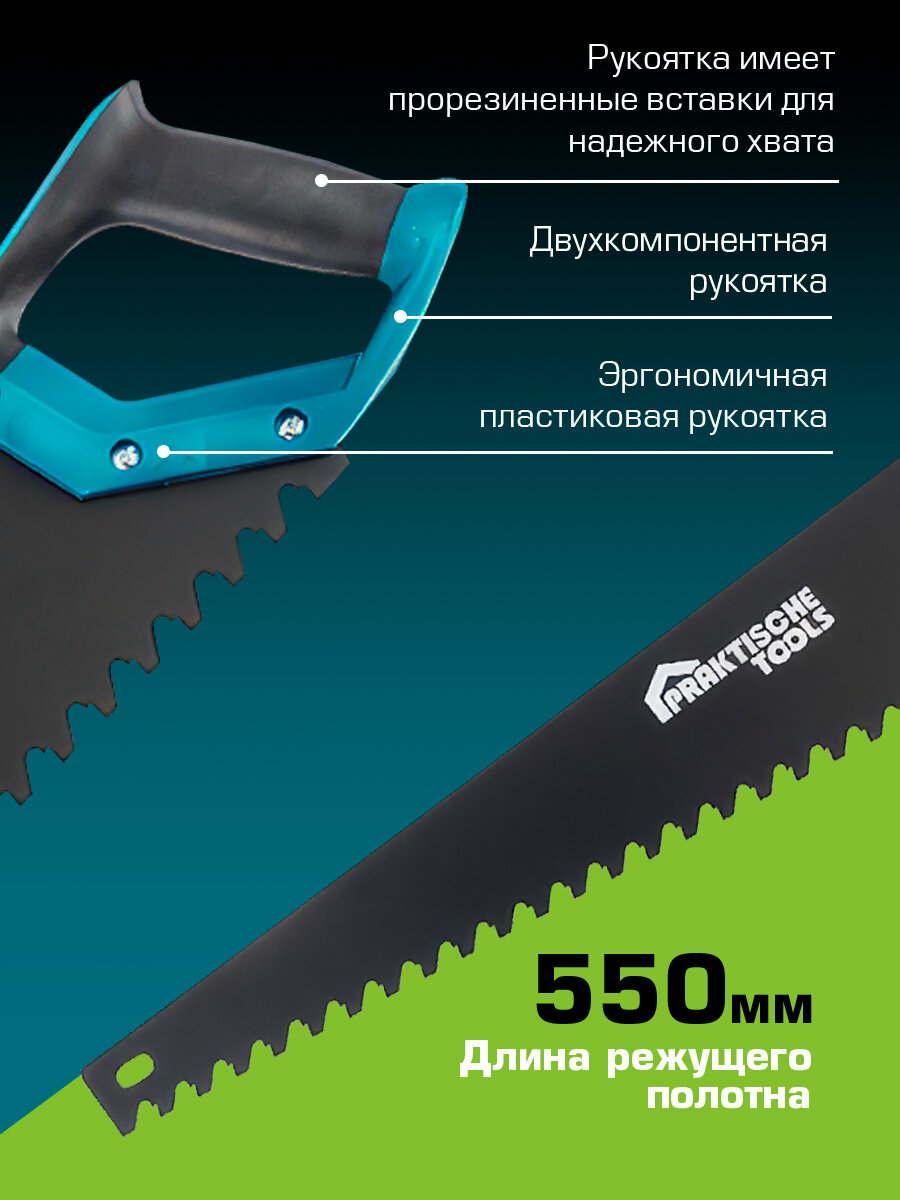 Ножовка по газобетону `PRAKTISCHE TOOLS`, 550 мм, шаг 16 мм, 0.5-2 TPI информация: