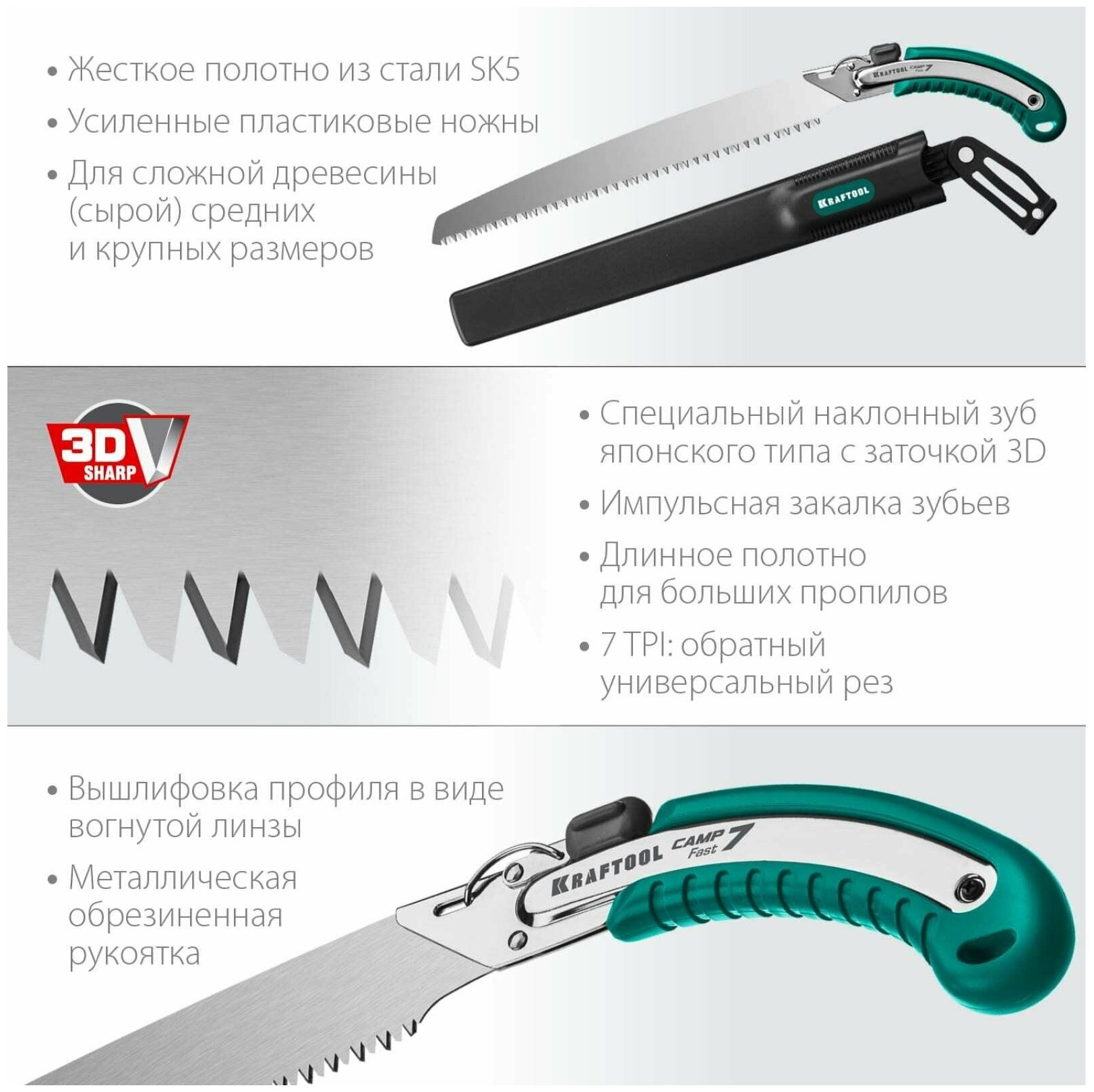 Ножовка для быстрого реза сырой древесины KRAFTOOL CAMP Fast 7 350 мм 15216 информация: