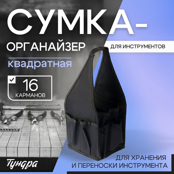 Отзывы на Сумка-органайзер тундра, квадратная, для хранения и переноски инструмента, 16 карманов