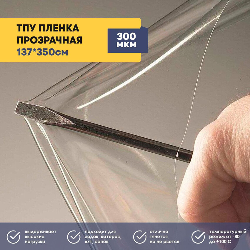 ТПУ пленка прозрачная (термостойкая полиуретановая пленка), толщина 300 мкм, размер 1,37*2,5м 3 495 ₽