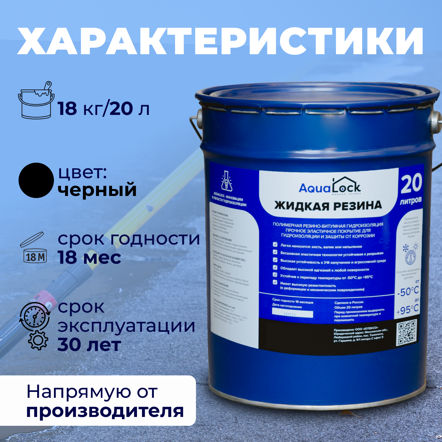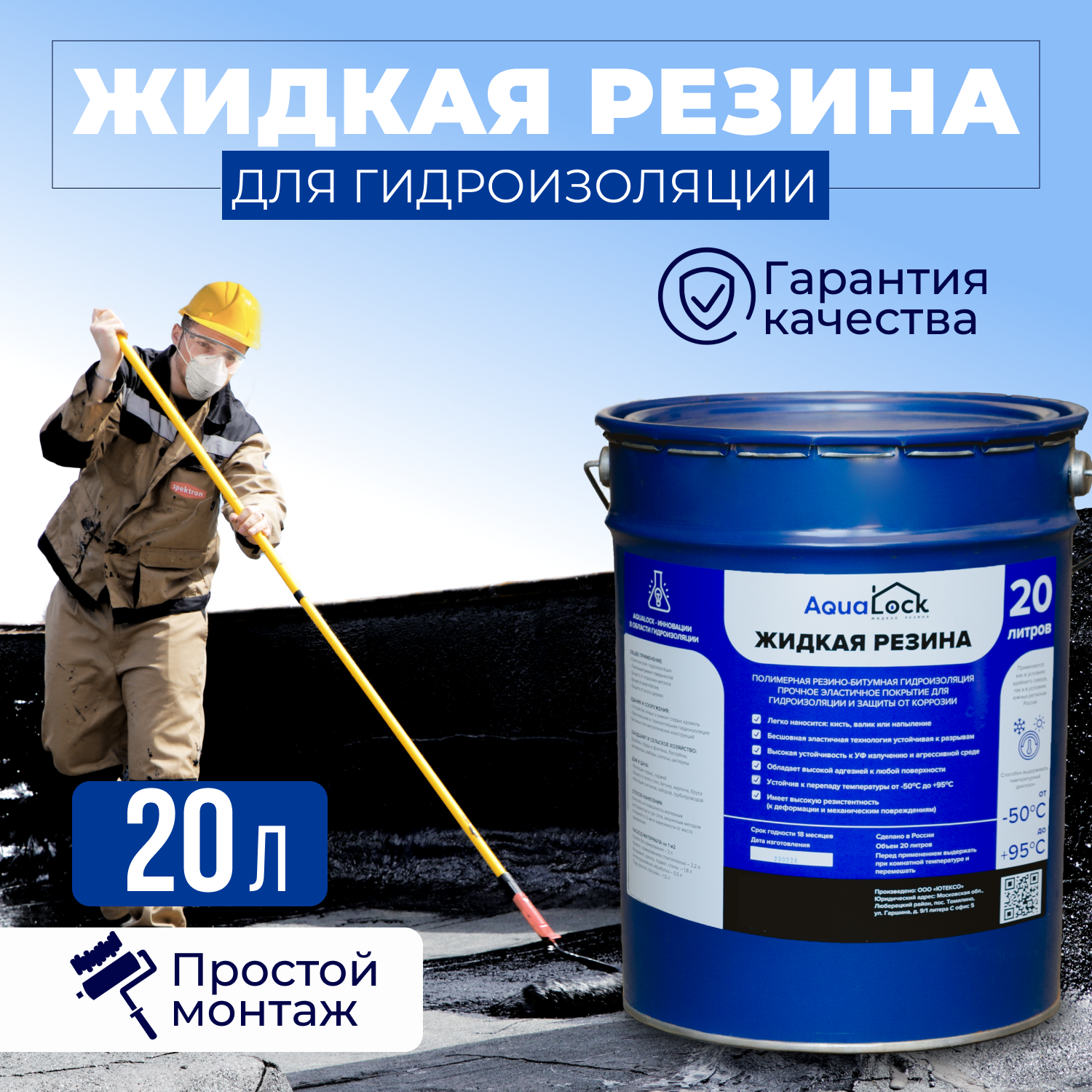 Универсальная жидкая резина AQUALOCK, 20 литров. Для кровли, для бетона, для дерева и металла. информация: