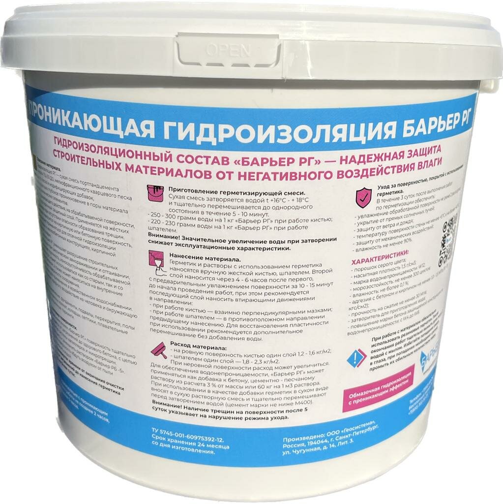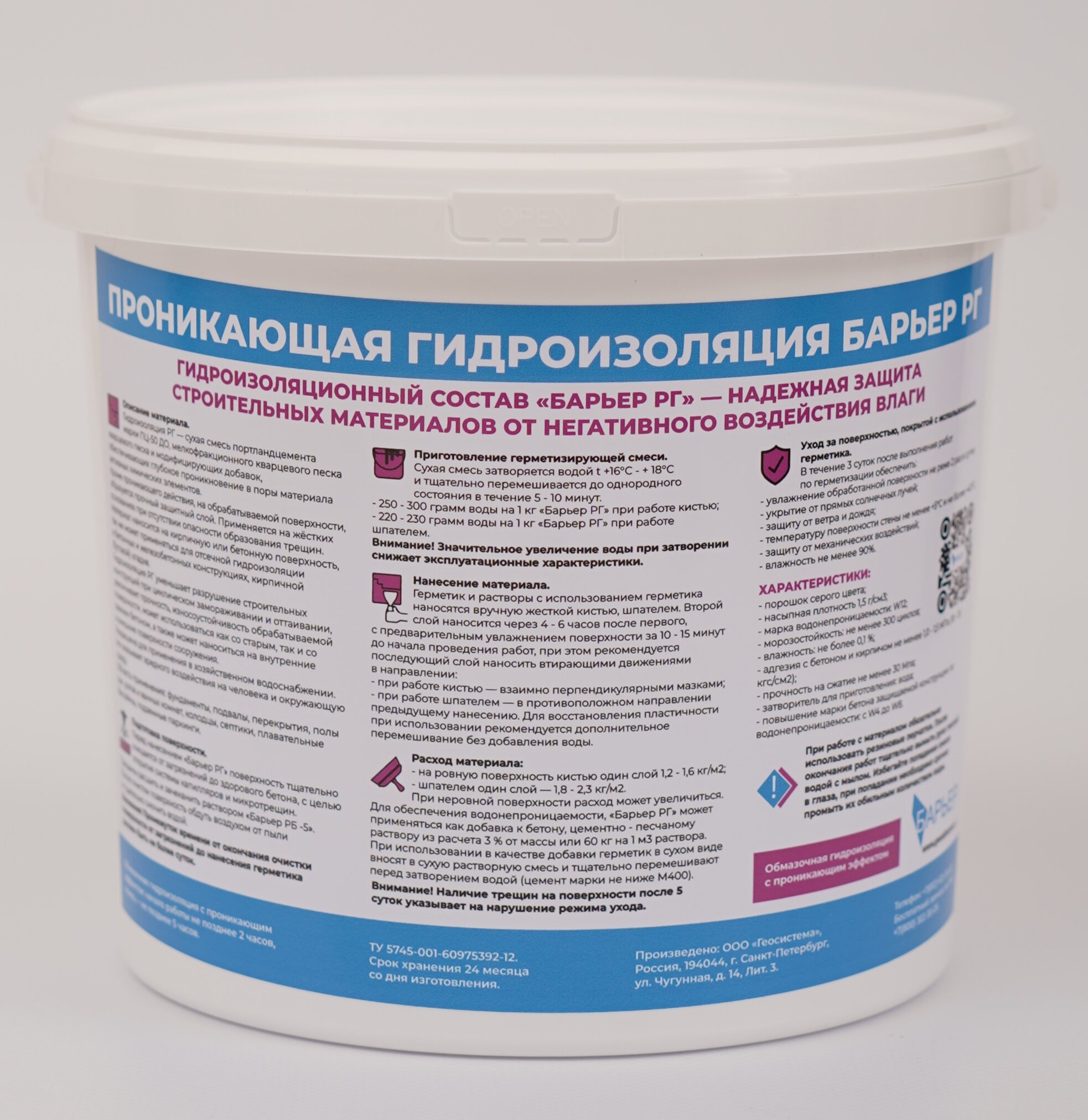 Проникающая обмазочная гидроизоляция Барьер РГ - ведро 6.5 кг информация:
