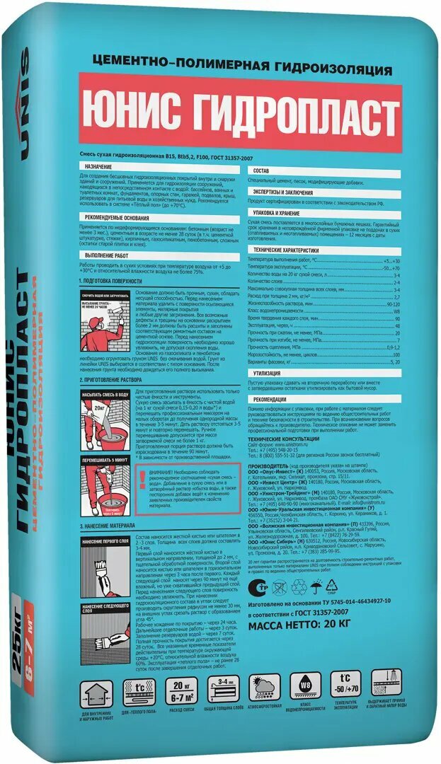 Гидроизоляция UNIS Гидропласт 20 кг информация: