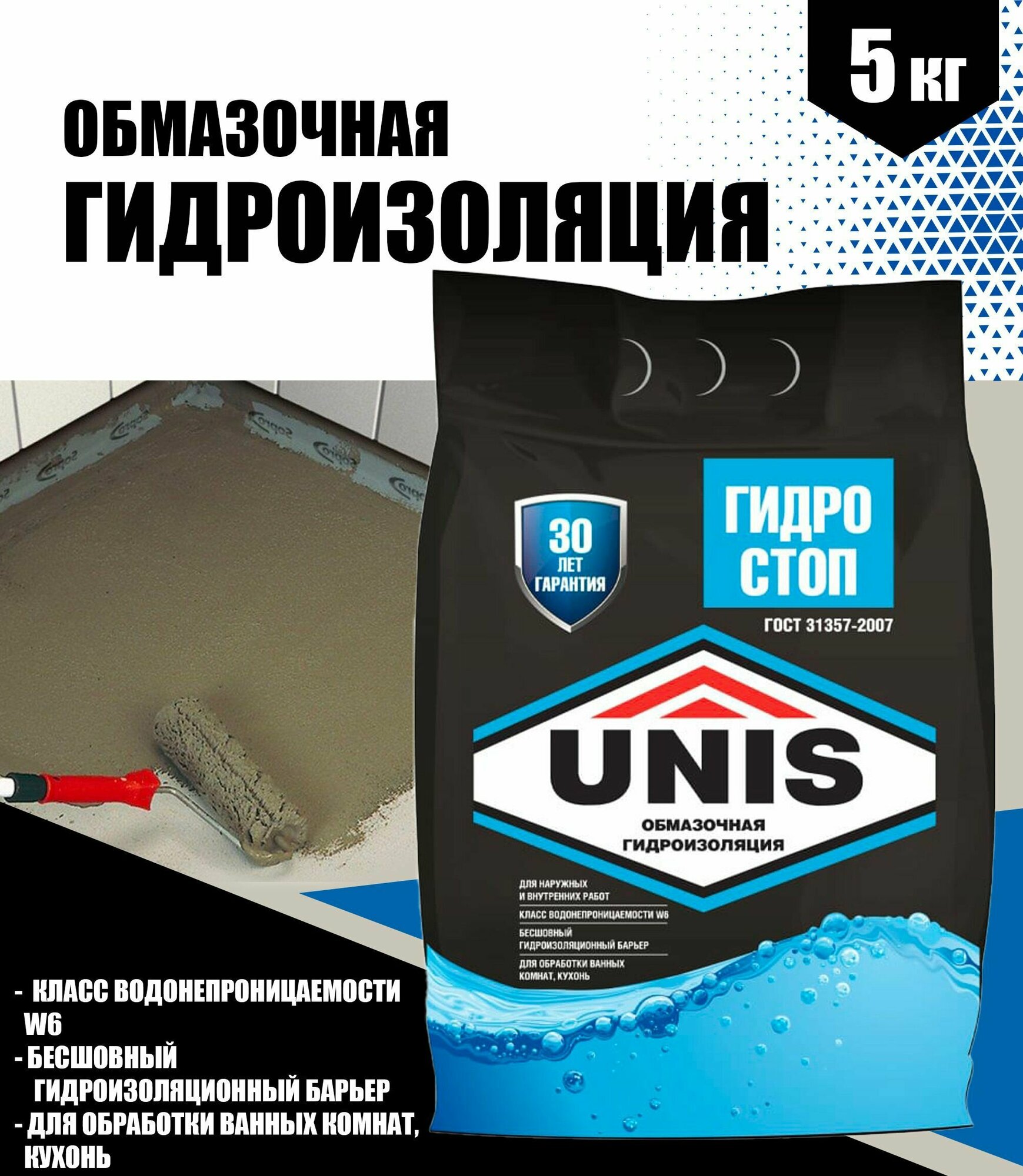 Гидроизоляция обмазочная UNIS гидростоп W8 5 кг информация: