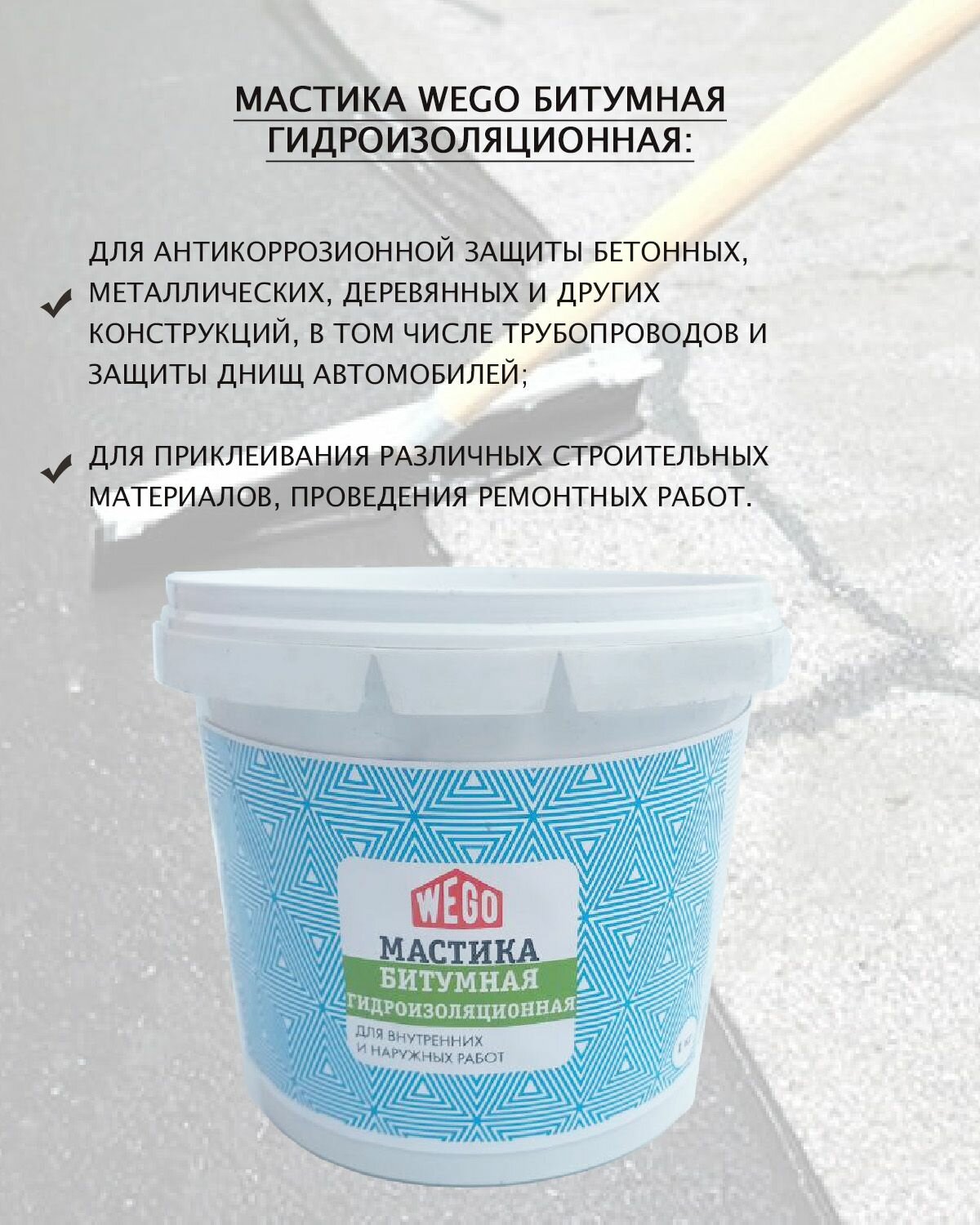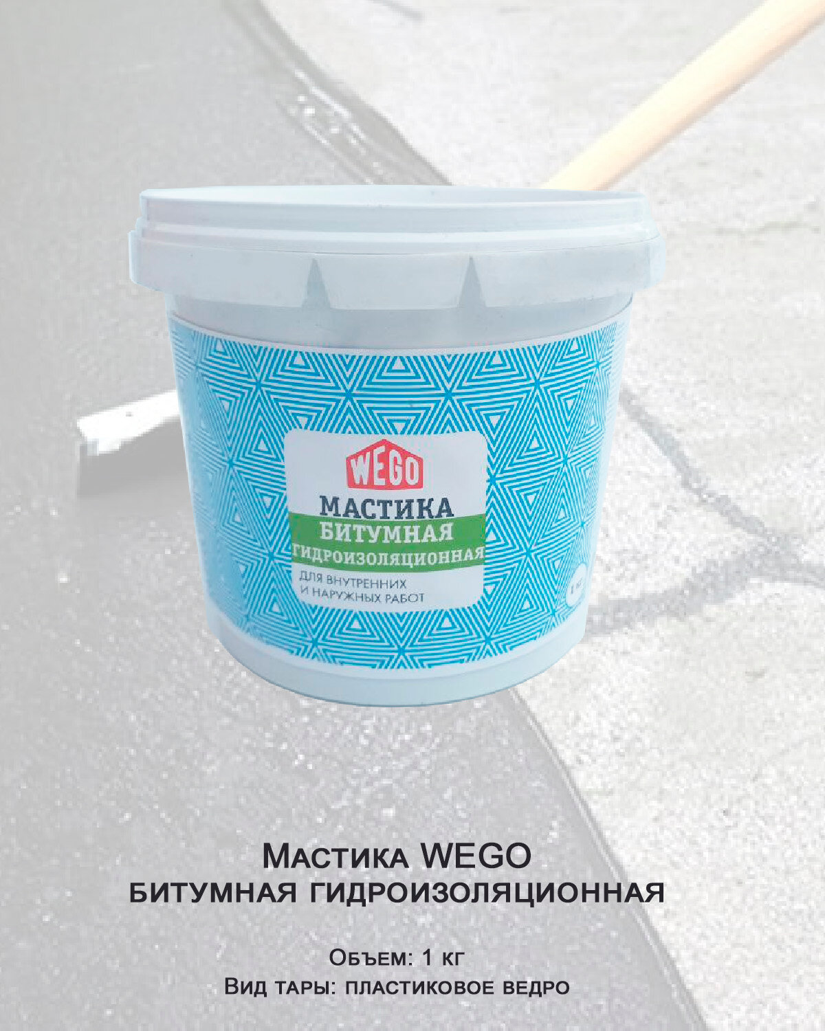 Мастика WEGO битумная гидроизоляционная 1кг, ведро пластик информация: