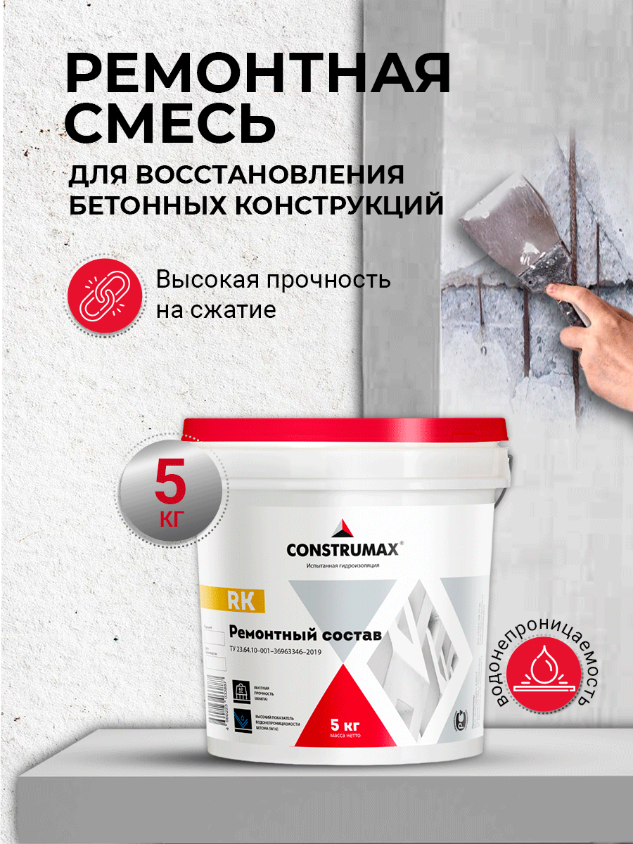 Ремонтная смесь Construmax RK 5 кг, серая информация: