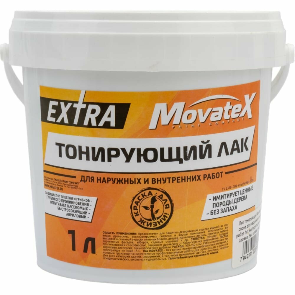 Тонирующий лак для наружных и внутренних работ Movatex EXTRA информация: