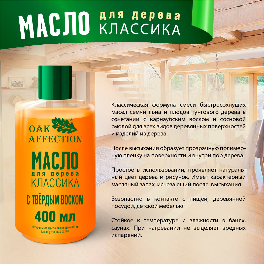 Масло Классика с твердым воском для дерева 400мл информация: