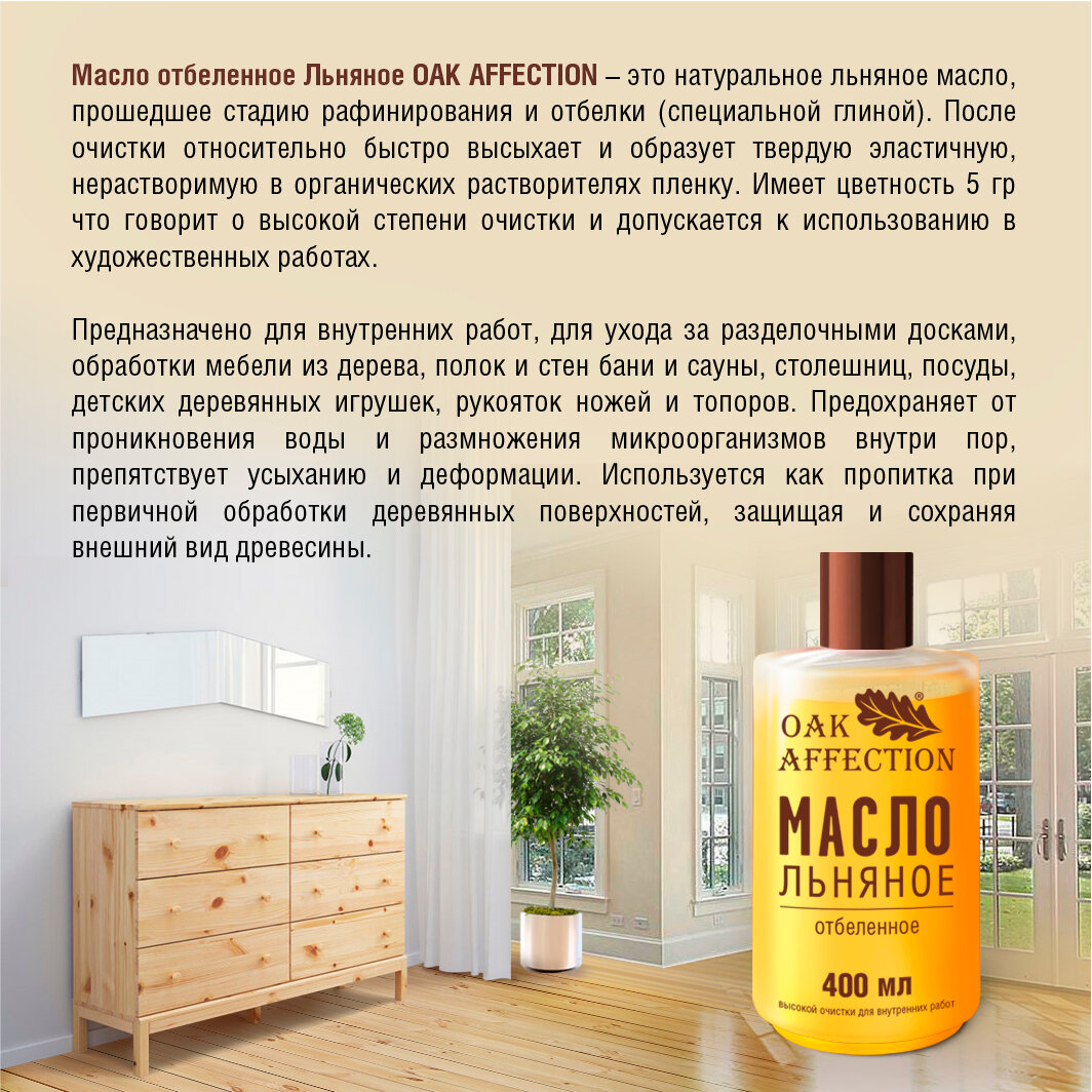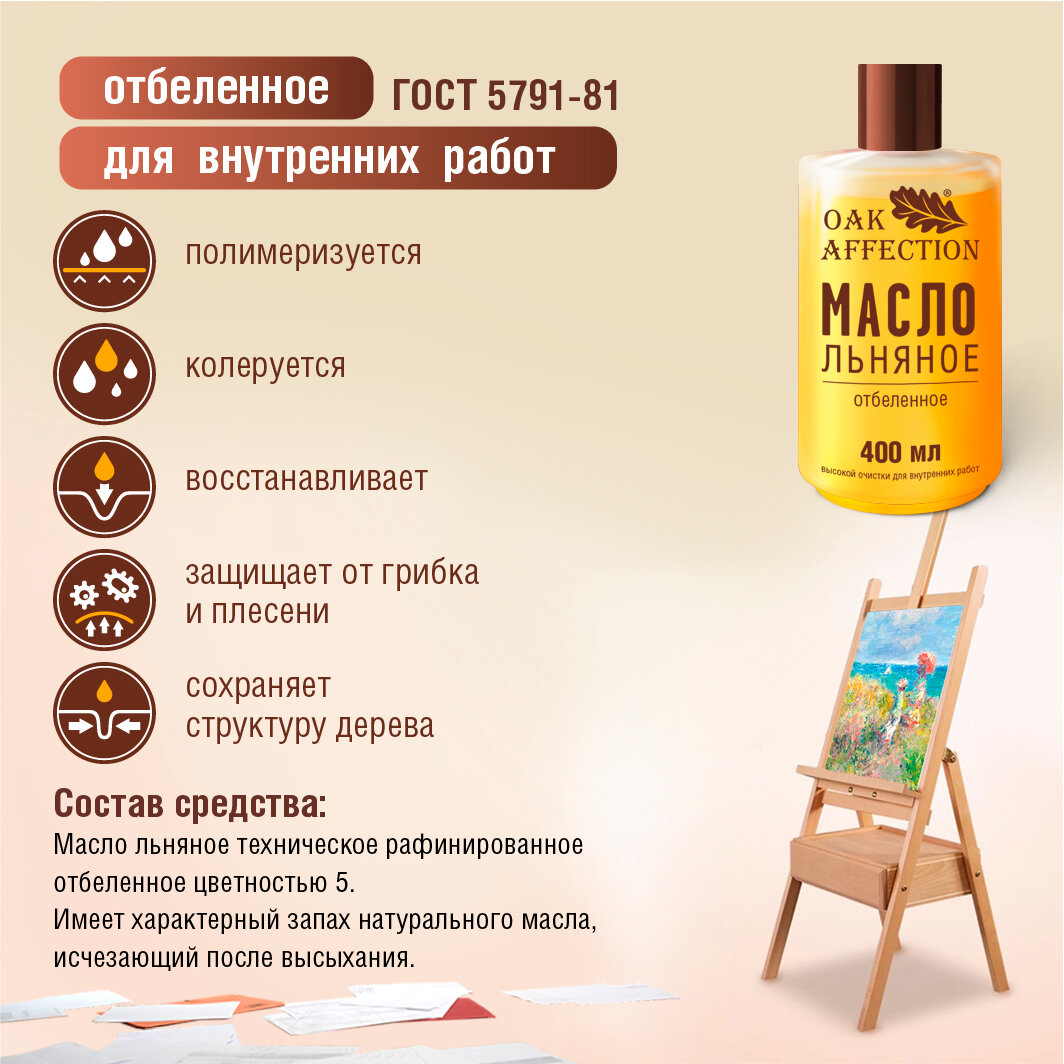 Масло Льняное отбеленное для дерева 400мл информация: