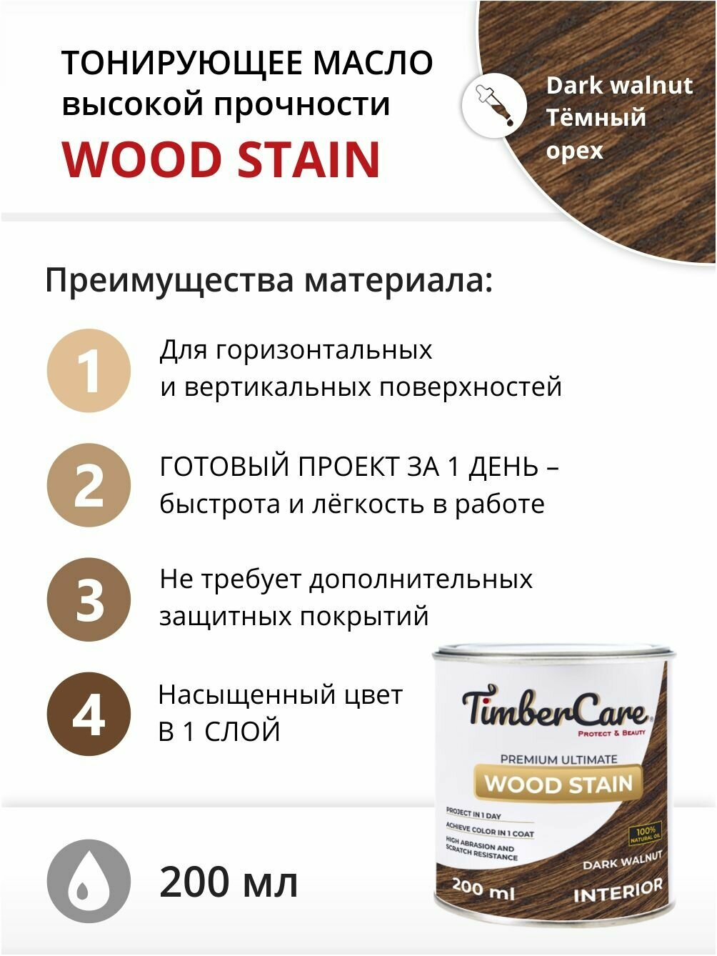 Масло тонирующее TimberCare Wood Stain (цвет: Темный орех/ Dark walnut), банка 0,2л информация:
