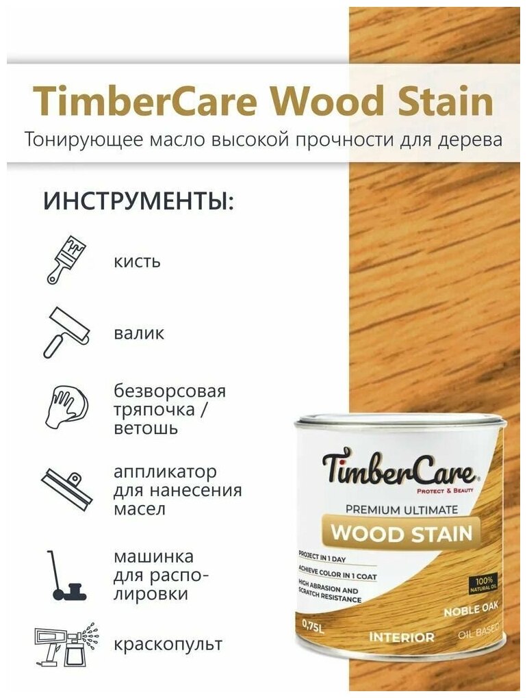 Масло для дерева и мебели TimberCare Wood Stain, быстросохнущие масла для дерева для внутренних работ, Благородный дуб/ Noble Oak, 0.75 л 2 600 ₽