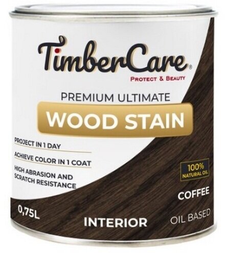 Масло для дерева и мебели TimberCare Wood Stain, быстросохнущие масла для дерева для внутренних работ, Кофе/ Coffee, 0.75 л